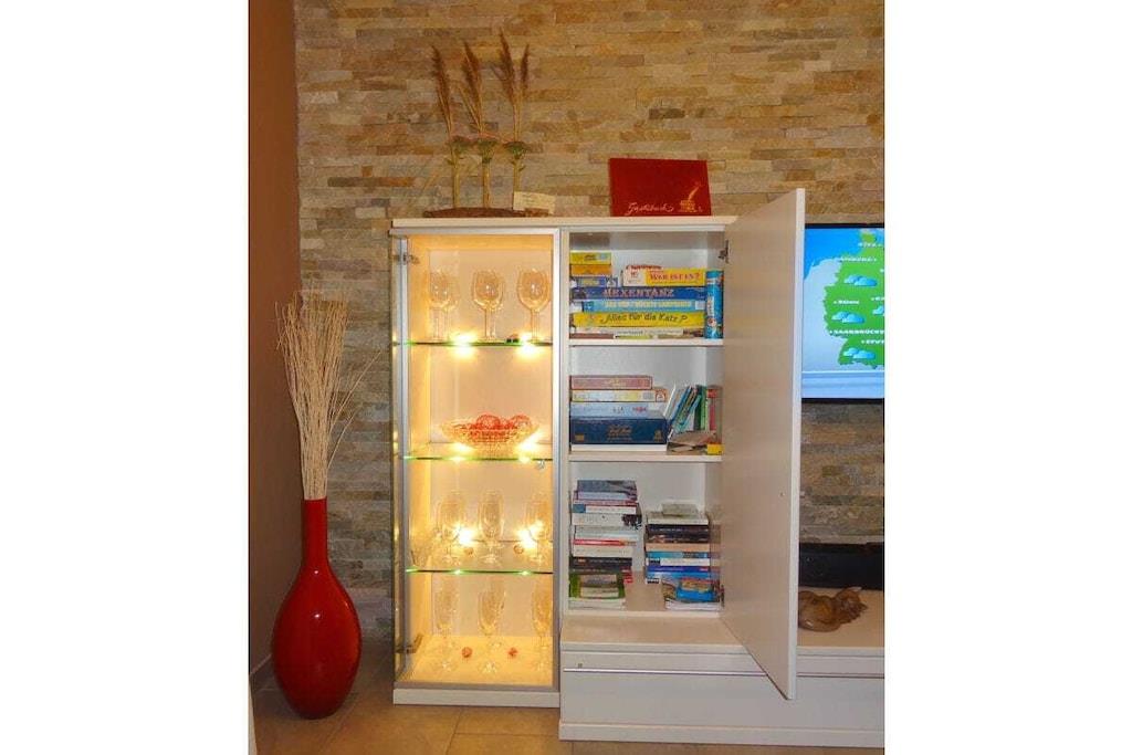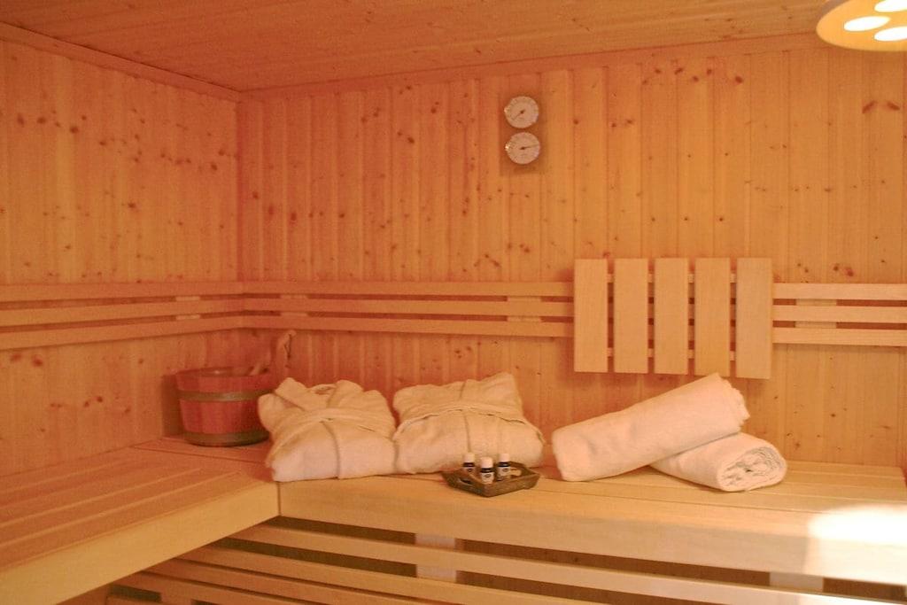 Parterre: (Eingangshalle(, , Heizung), Küche(, , , Kochplatte, Wasserkocher, Toaster, Kaffeemaschine, Backofen, Mikrowelle, Spülmaschine, Kühlschrank, Tiefkühlschrank, Heizung, Fliegenfenster), Wohn/Esszimmer(, , Bibliothek, TV, Esstisch, Kaminofen, DVD-Spieler, DVD-Spieler, Blu-ray-Player, Radio, CD-Spieler, Stereoanlage, Heizung, Hochstuhl, Fliegenfenster), Badezimmer(, Toilette, Dusche, Waschbecken, Heizung, Föhn, Fliegenfenster), Ruheraum(Sauna)) In der 1. Etage: (Schlafzimmer(, , , , Doppelbett, TV, TV, Radio, Babybett, Heizung, Fliegenfenster), Schlafzimmer(, , , , Doppelbett, TV, TV, Radio, Heizung, Fliegenfenster), Badezimmer(, Toilette, Radio, Dusche, Waschbecken, Heizung, Föhn, Fliegenfenster), Abstellraum(, Waschmaschine, Bügelbrett, Bügeleisen, Trockenschrank)) In der 2. Etage: (Gartenlounge(, TV, Fliegenfenster)) , , , , Abstellraum(Gartenhaus), Internet, Erste-Hilfe-Station, Waschmaschine, Balkon(Gartenmöbel), Heizung, Terrasse(, Grill, Gartenmöbel, Liegen, Pool), Garten(, Liegewiese, Grill, Hottub, Gartenmöbel, Liegen, Gartenhaus), Parkplatz, Treppenschutzgitter, Bügelbrett, Bügeleisen, Trockenschrank
