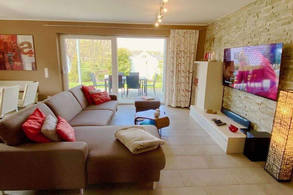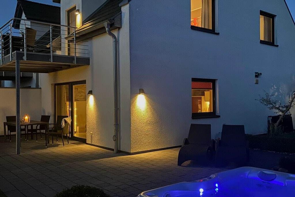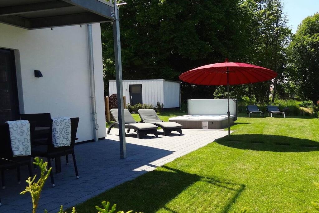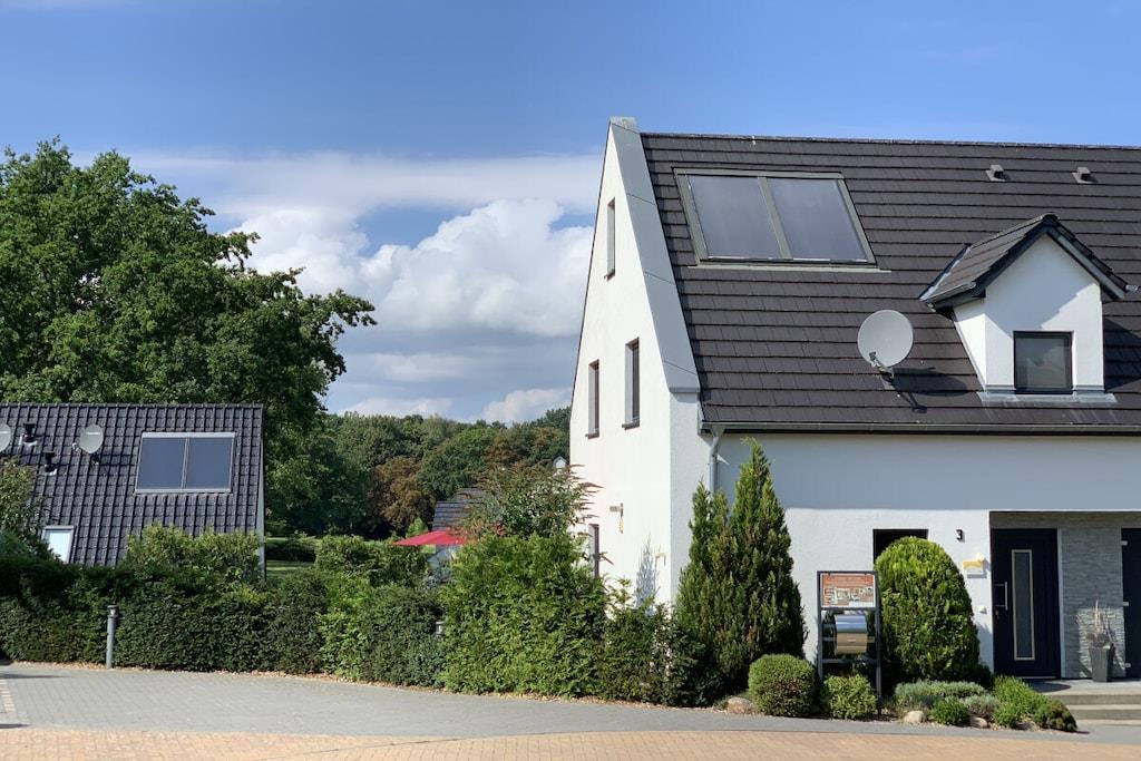 Das Ferienhaus ist geeignet für maximal 4 Personen, zusätzlich können zwei Kleinkinder (bis 2 J.) in unseren Baby-Reisebetten schlafen. Haustiere sind nicht erlaubt. "Villa Foresta" - hier verbringen Sie Ihren Urlaub in einem modernen und exklusiven Feriendomizil, das bei jedem Wetter und zu jeder Jahreszeit einen erholsamen Aufenthalt garantiert. Die vorteilhafte Lage der Doppelhaushälfte - leicht erhöht, sonnig, mit Ausblick und Privatsphäre - bietet einen schönen Blick auf den Schlosspark und durch den großen Garten (300 m² in Süd-West-Lage) stehen die Nachbarhäuser in angenehmer Entfernung. Die Betten finden Sie bezogen vor, auch Handtuchsets stellen wir kostenfrei bereit. Eine Sauna und der ganzjährig beheizte Außen-Whirlpool stehen Ihnen alleine zur Verfügung. In unserem Fitnessraum bleiben Sie auch im Urlaub in Bewegung. SKY-TV im Wohnbereich, VDSL-Internet/WLAN im gesamten Haus und die gute technische Ausstattung runden die exklusive Ausstattung ab. Baby-Reisebett sowie Hochstuhl und Treppengitter bleiben kostenfrei. Zahlreiche Bücher, DVDs und Spiele garantieren Unterhaltung! Unser Ferienhaus ist allergikergerecht, denn weder auf der Couch und noch in den Betten haben vorher Haustiere geschlafen. Golfrunden im Golfclub Fleesensee spielen Sie mit 10 % Rabatt; zwei Ziehtrollies stellen wir ohne Gebühr zur Verfügung. Tee 1 des Schloss Platzes ist nur 300 Meter entfernt.