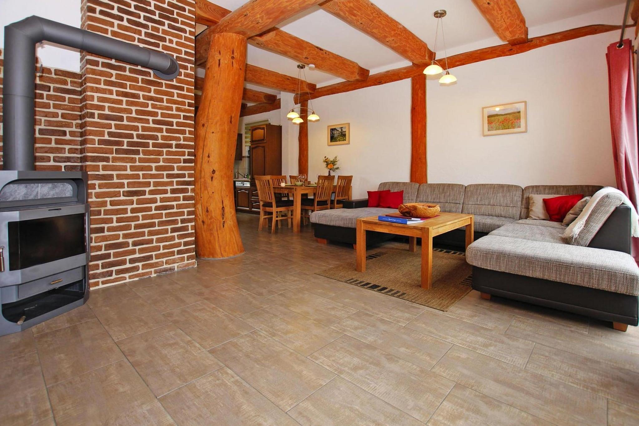 Das Naturstamm-Fachwerkhaus befindet sich direkt am Waldrand in ruhiger Lage, nur 350 Meter vom Badestrand am Fleesensee entfernt im Ortsteil Untergöhren. Die liebevolle und komfortable Einrichtung lässt sofort Erholung aufkommen und macht den Alltagsstress vergessen. Die Ausstattung, die vom kostenfreien WLAN bis hin zum gemütlich knisternden Kaminofen reicht, sorgt das ganze Jahr über für angenehme und entspannte Urlaubstage. Die Gemeinde Göhren-Lebbin liegt am Fleesensee und am Kölpinsee, etwa sechs Kilometer von der kleinen Stadt Malchow und 25 Kilometer von Waren (Müritz) entfernt. Ein Day-Spa für die Entspannung, der Strand für vergnügliche Badetage, ein Golfplatz für die Verbesserung des Handicaps sowie verschiedene gastronomische Angebote sorgen für höchst abwechslungsreiche Urlaubstage. Highlights inklusive: Alle verbrauchsabhängigen Energiekosten, Endreinigung, WLAN Hinweis: Bettwäsche und Handtücher sind mitzubringen! Aktivitäten in der Nähe: Sie finden viele Freizeitmöglichkeiten in direkter Nähe: Versuchen Sie sich an einer der angebotenen Wassersportarten, gehen Sie im Golf Country Club Fleesensee Ihre Eisen schwingen oder verbringen Sie gemeinsame Quality-Time beim Tennis oder einem Reitausflug in die Umgebung. Etwas Gutes tun Sie für Seele, Körper und Geist mit einem Besuch in der Fleesensee SPA Therme, die auch Wellness- und Beautyanwendungen anbietet. Der Marktplatz von Göhren-Lebbin ist bei Urlaubern aufgrund seiner hervorragenden touristischen Infrastruktur sehr beliebt. Nicht weit von der Unterkunft entfernt und direkt am Ufer des Flessensees befinden sich Liegewiesen mit Badestellen, Sportstätten, Sanitäranlagen, Gastronomieangebote, einen Bootsverleih sowie der Schiffsanleger für die „Weiße Flotte"