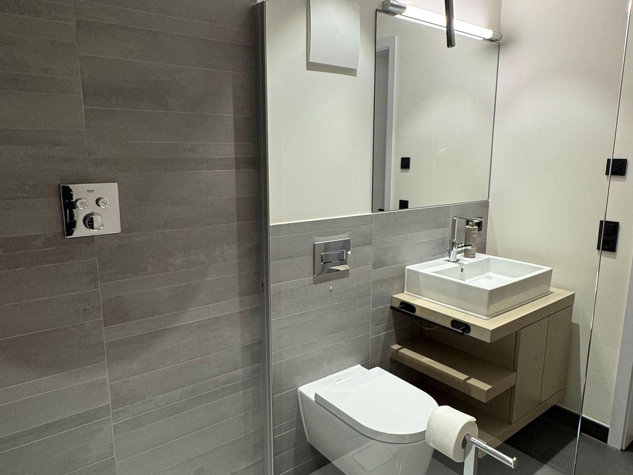 • Grohe-Armaturen, Mosa-Fliesen, Föhn und Ganzkörperspiegel