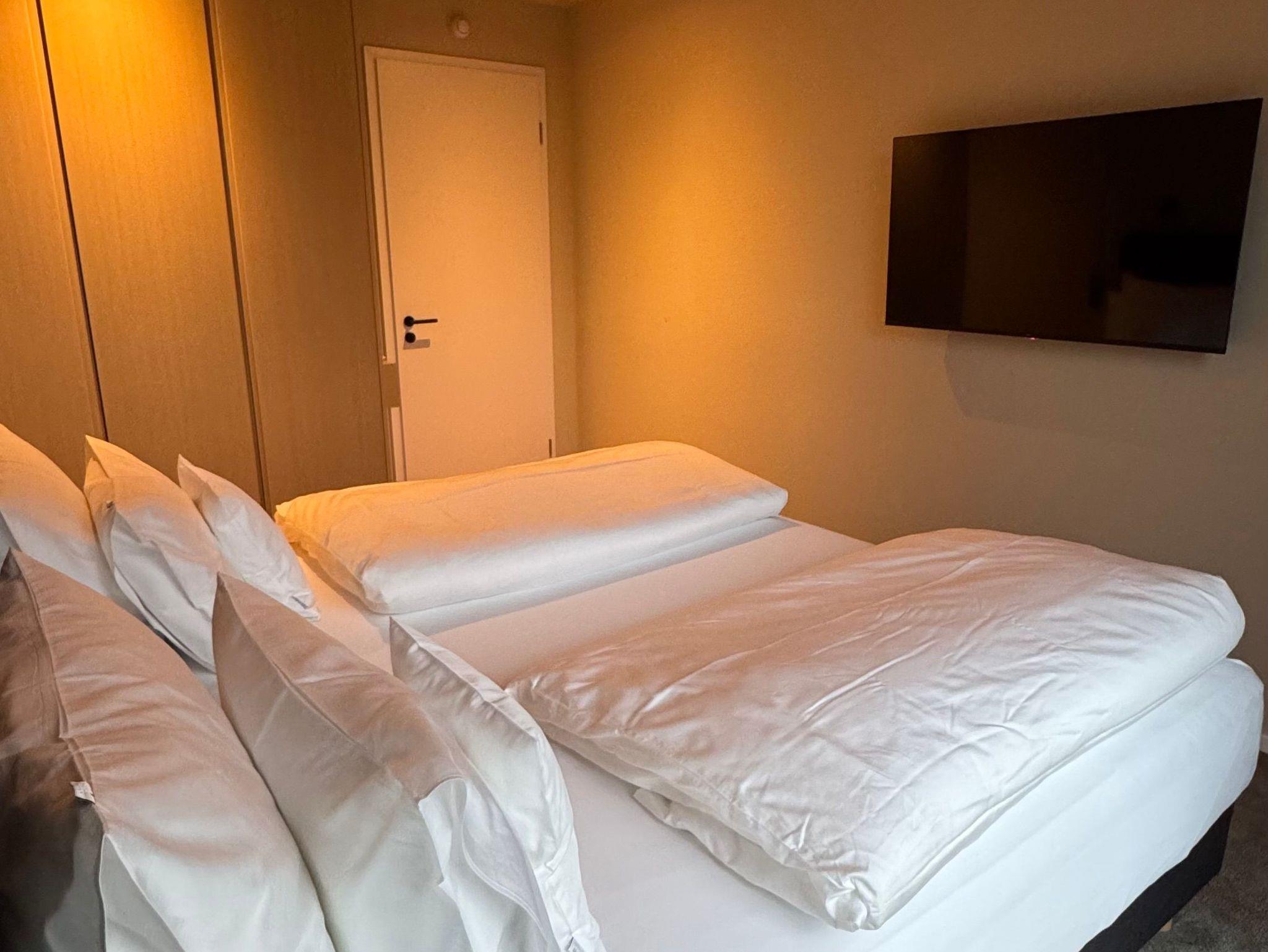 Die Suiten 802 & 803 bieten auf jeweils 91m² exklusiven Komfort für jeweils bis zu 6 Personen. Beide Suiten verfügen über die gleiche hochwertige Ausstattung und lassen sich durch eine Verbindungstür zu einer großzügigen Einheit für bis zu 12 Personen kombinieren, was ideal für größere Familien, Freundesgruppen oder kleine Teams ist.