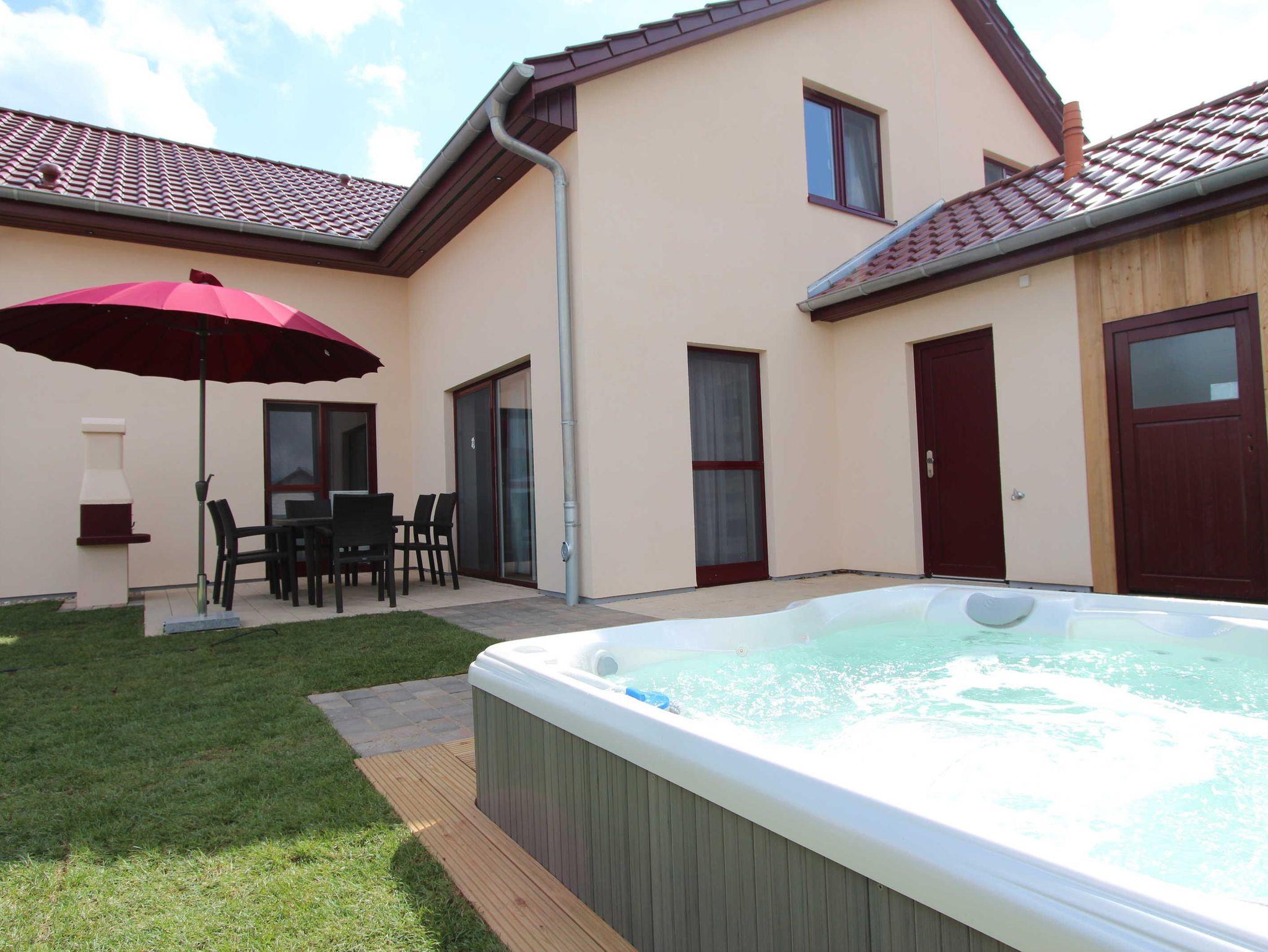 Ein absolutes Highlight ist der Außenwhirlpool, der sich im Garten befindet und zu entspannten Stunden einlädt. Genießen Sie hier die wohltuende Massage des Whirlpools und den Blick in den Sternenhimmel oder sitzen Sie abends gemütlich mit Ihrer Familie auf der Terrasse und grillen gemeinsam.