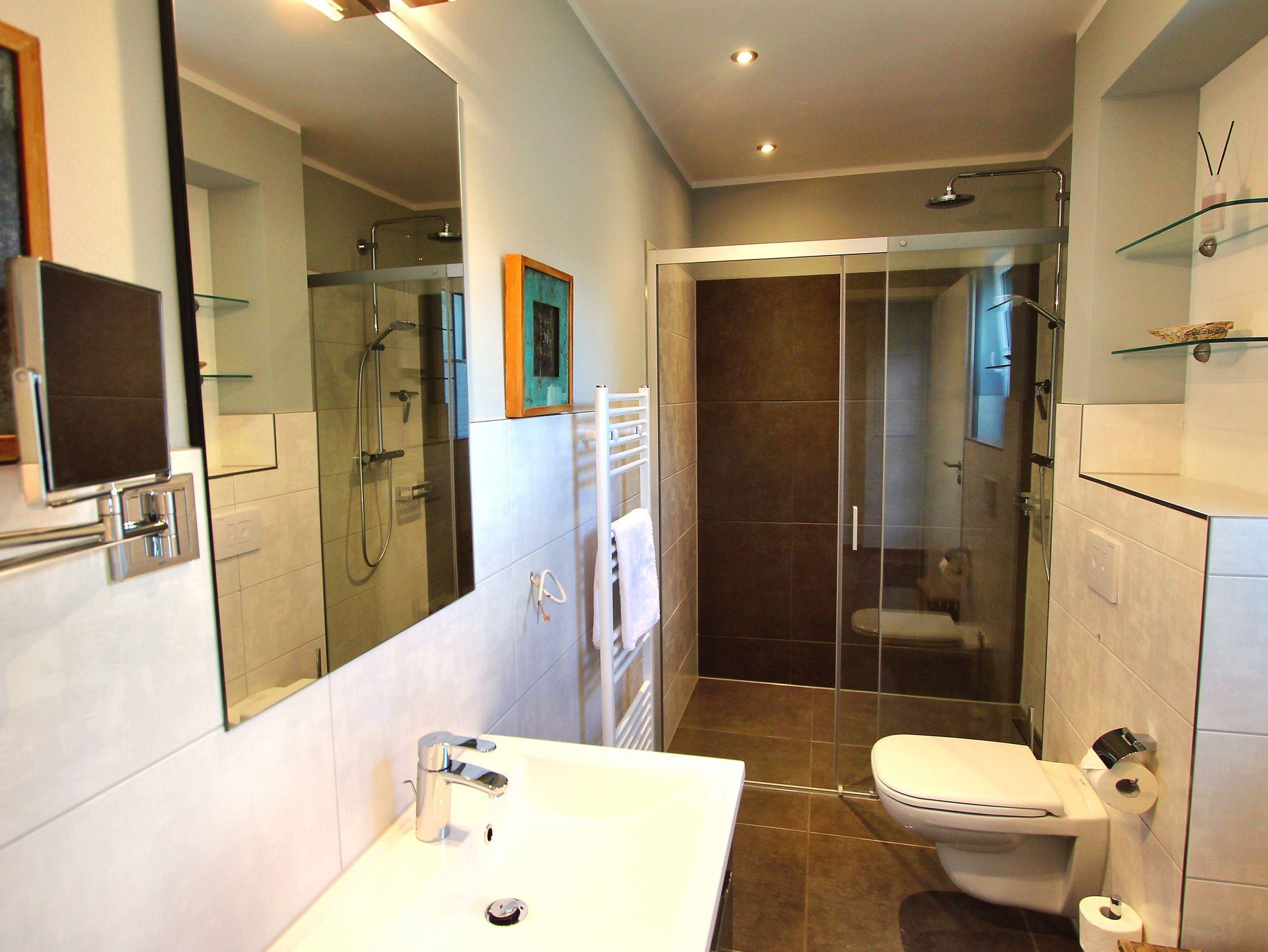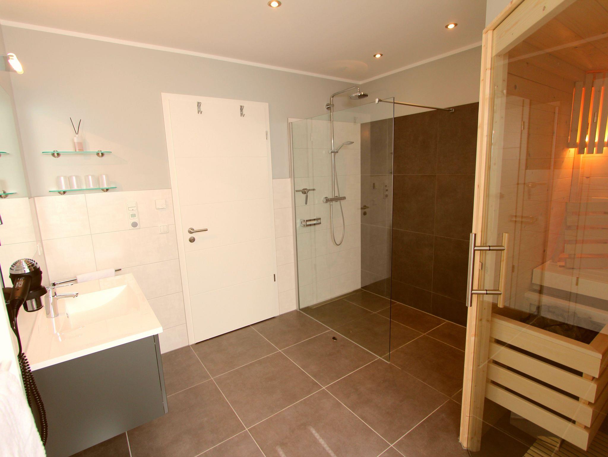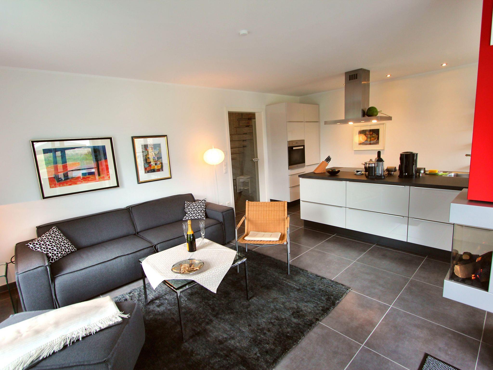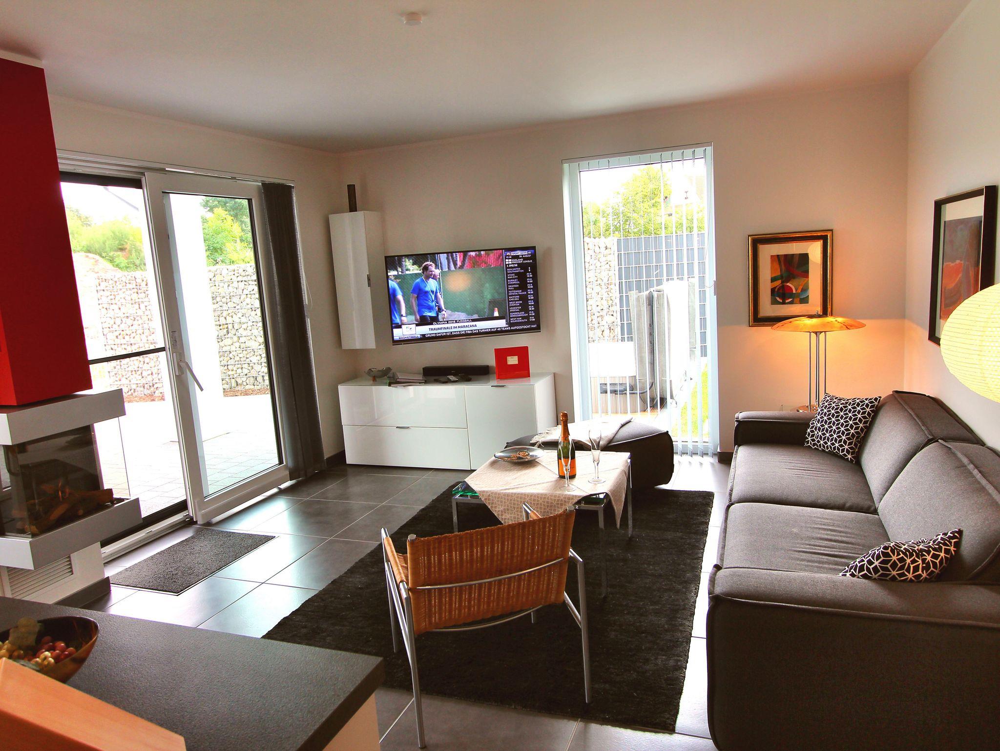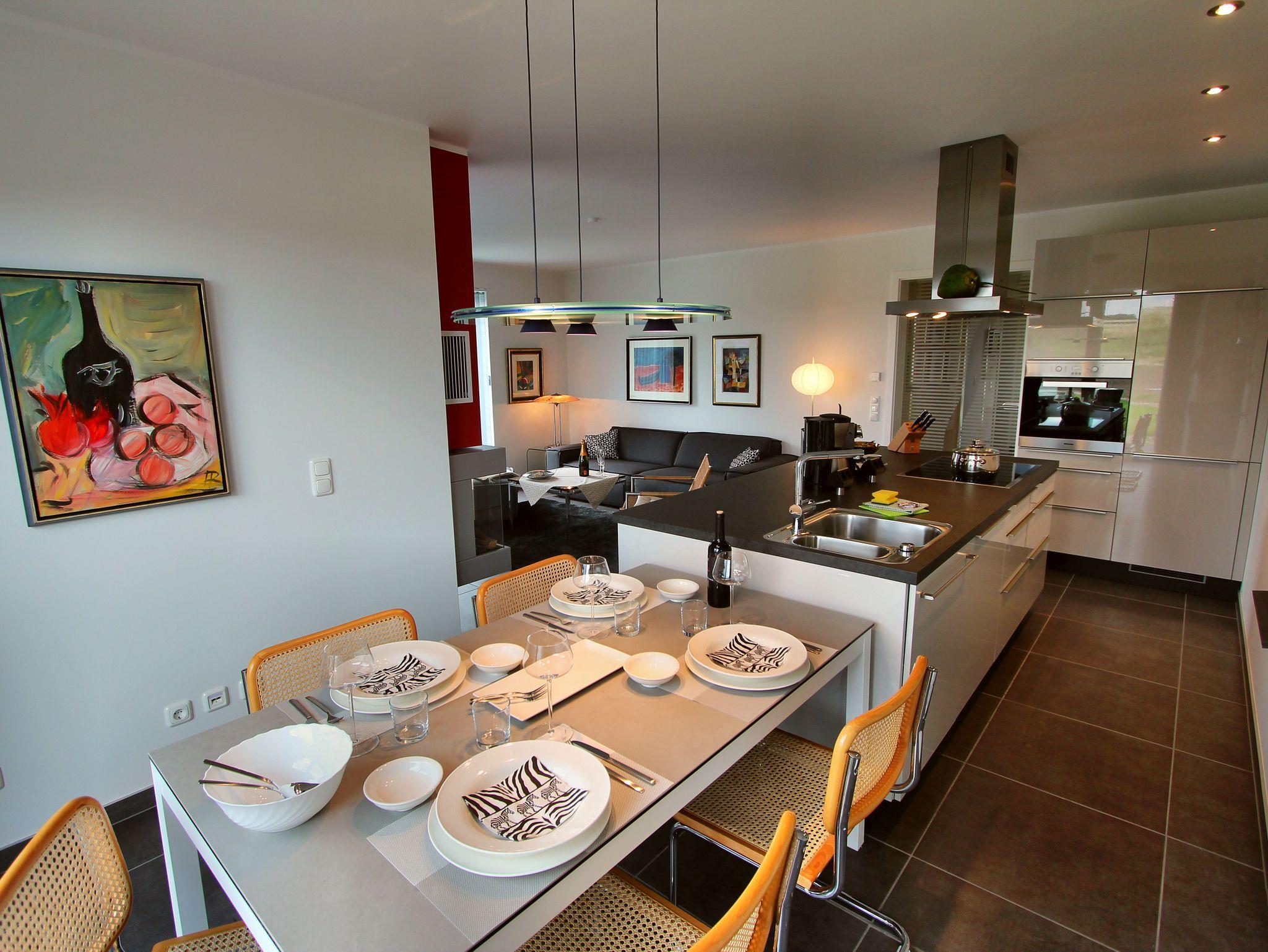 Das Haus verfügt über insgesamt 3 Schlafzimmer, 2 Bäder (eins mit Sauna) einen Wohn- und Essbereich, einen Gas Kamin und eine reich ausgestattete Küche mit Kochinsel, die das Herz eines Hobbykochs höherschlagen lässt. Sowohl aus dem Wohn- wie dem Essbereich gelangen Sie über zwei Schiebetüranlagen auf die eigene Terrasse. Alle Zimmer verfügen über eine Fußbodenheizung, die individuell regulierbar ist. In allen drei Schlafräumen sind Fernseher vorhanden (Wohnraum mit Sky). Ein Hauswirtschaftsraum mit Waschmaschine, Bügelbrett, Staubsauger, Kinderbett (gratis), Putzzubehör und Tresor ist selbstverständlich. Als Besonderheit ist das Ferienhaus ARKADIEN insgesamt mit mehr als 30 Kunstwerken der klassischen Moderne ausgestattet.