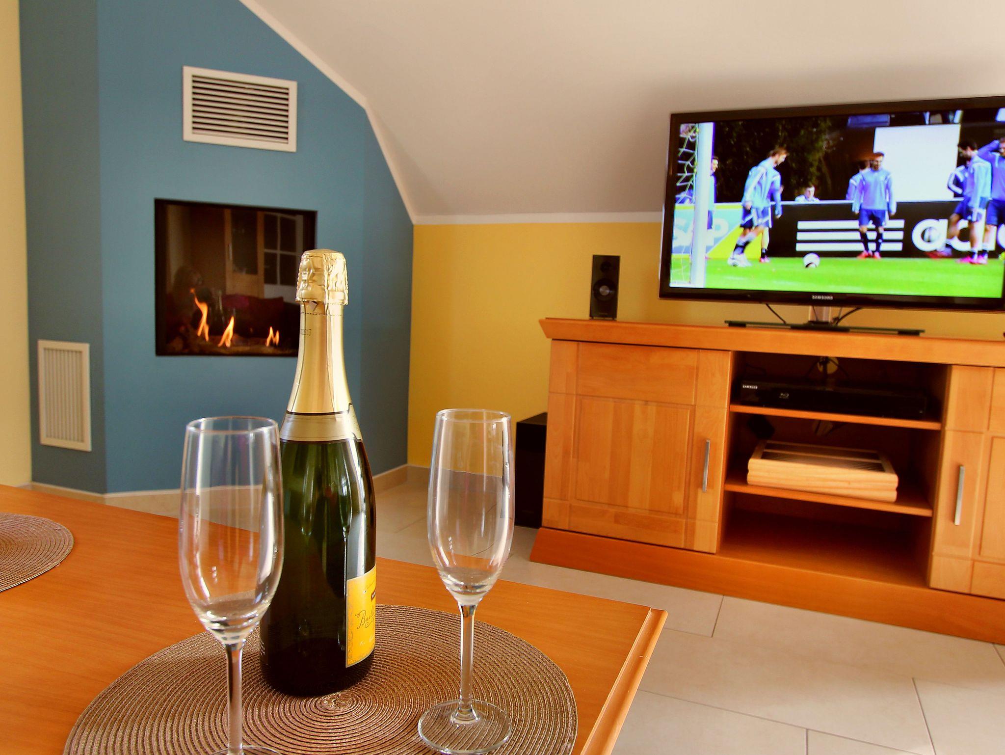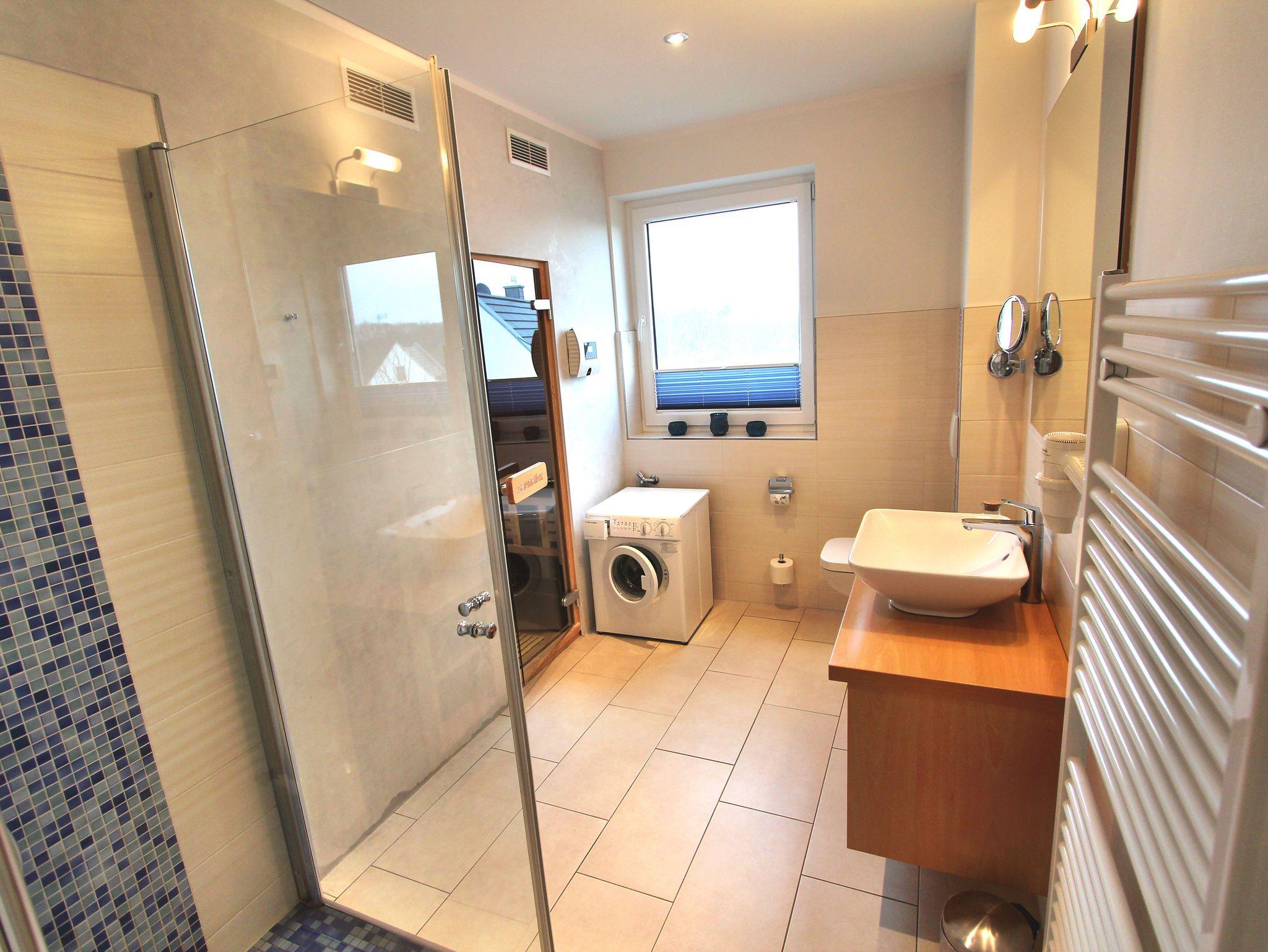 Unser Haus besteht aus 2 separaten Ferienwohnungen mit hauseigenem Außen Whirlpool, die Ihnen eine entspannte und komfortable Auszeit bieten. Die Wohnung im Obergeschoss ist im Maisonette-Stil gestaltet und verfügt über eine private Sauna, in der Sie nach einem aktiven Tag wunderbar relaxen können. Der großzügige Wohn- und Essbereich lädt zum Verweilen und Entspannen ein. Hier können Sie gemütliche Stunden verbringen und gemeinsame Mahlzeiten genießen. Die voll ausgestattete Küche bietet Ihnen alle Annehmlichkeiten, um Ihre Lieblingsgerichte zuzubereiten. Die Ferienwohnung verfügt über 2 Schlafzimmer, die Ihnen eine angenehme Nachtruhe versprechen. Zudem stehen Ihnen 2 Bäder zur Verfügung, die mit modernen Annehmlichkeiten ausgestattet sind.