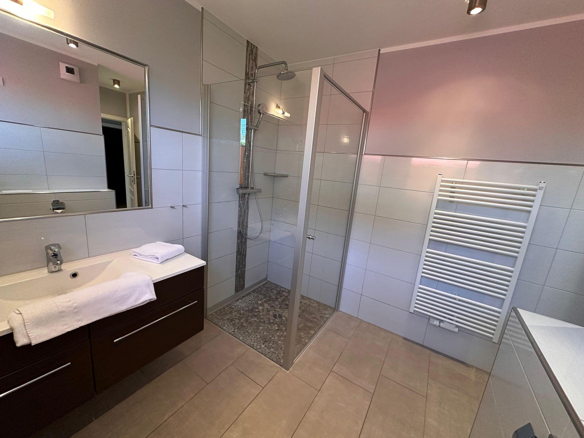 Die Bäder bieten moderne Waschtische und Raindance-Duschen. Das große Bad im OG verfügt zusätzlich über