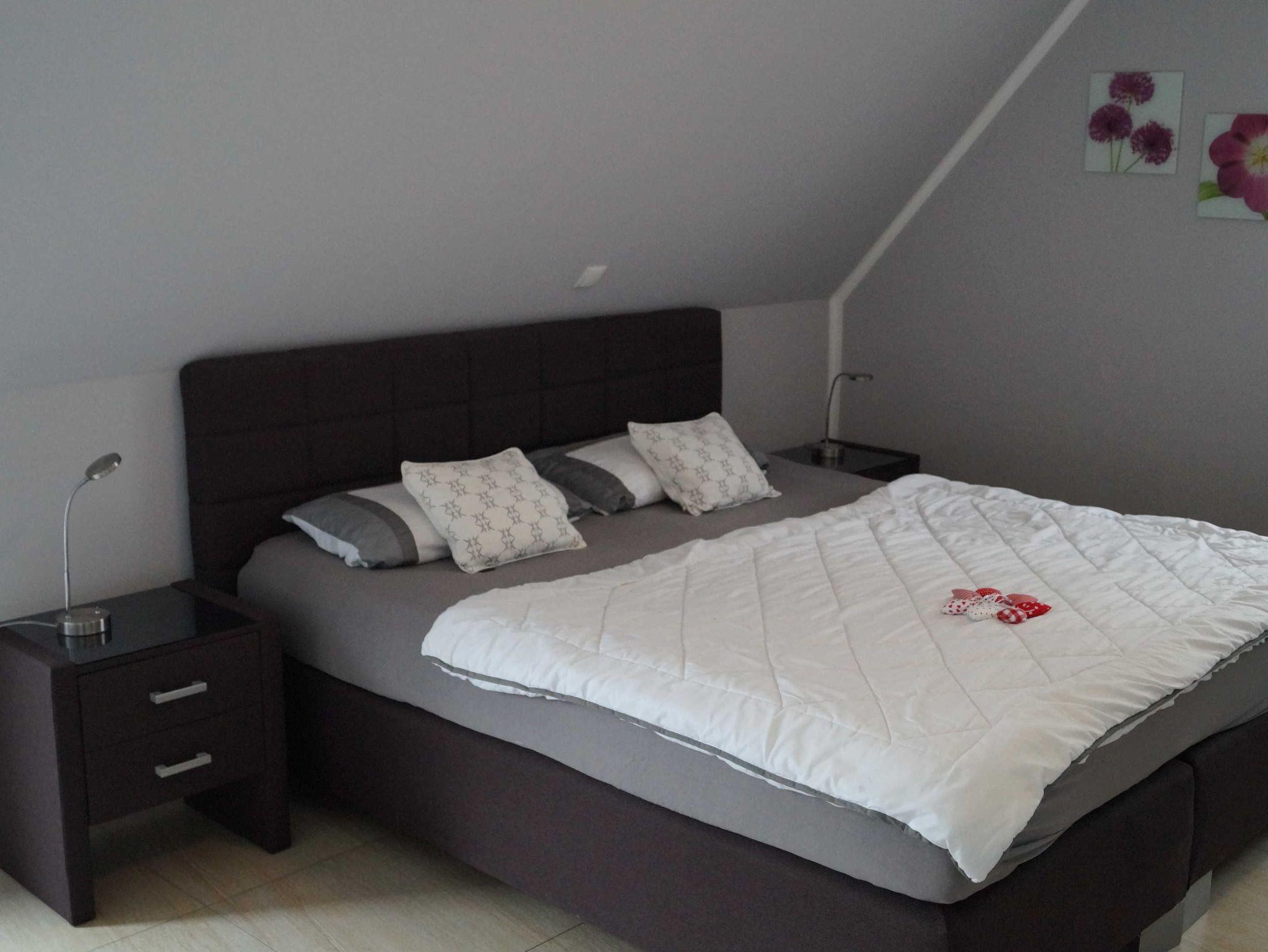 Die Schlafzimmer sind mit jeweils 180x200cm großen Doppelbetten ausgestattet.