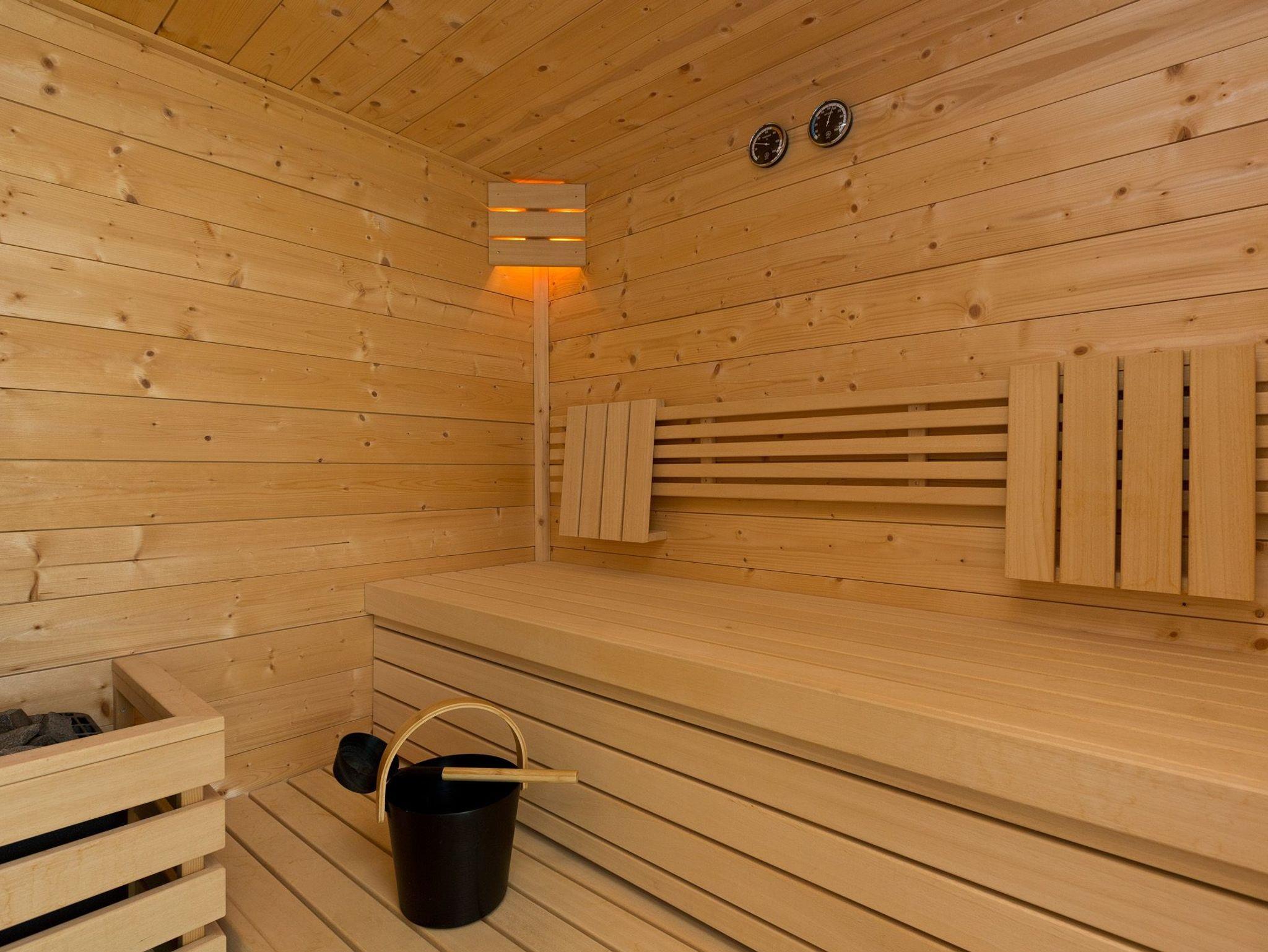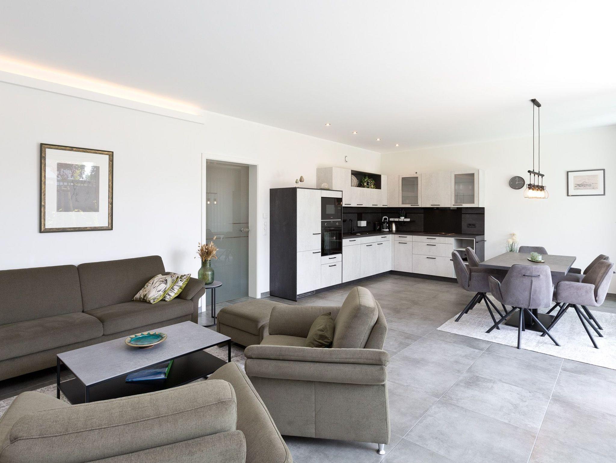 Mit 120m² Wohnfläche erwartet Sie ein großzügiges und gemütliches Ambiente. Der offene Wohn- und Essbereich mit einer Küche und einer großen Fensterfront lädt zum Verweilen und Genießen ein. Hier können Sie gemeinsam schöne Stunden verbringen und die Aussicht auf den Garten genießen. Die zwei Badezimmer bieten Ihnen Komfort und Luxus. Eines der Badezimmer ist mit einer Sauna ausgestattet, in der Sie sich herrlich entspannen können. Die zwei Schlafzimmer sind mit komfortablen Boxspringbetten ausgestattet, um Ihnen erholsame Nächte zu garantieren.