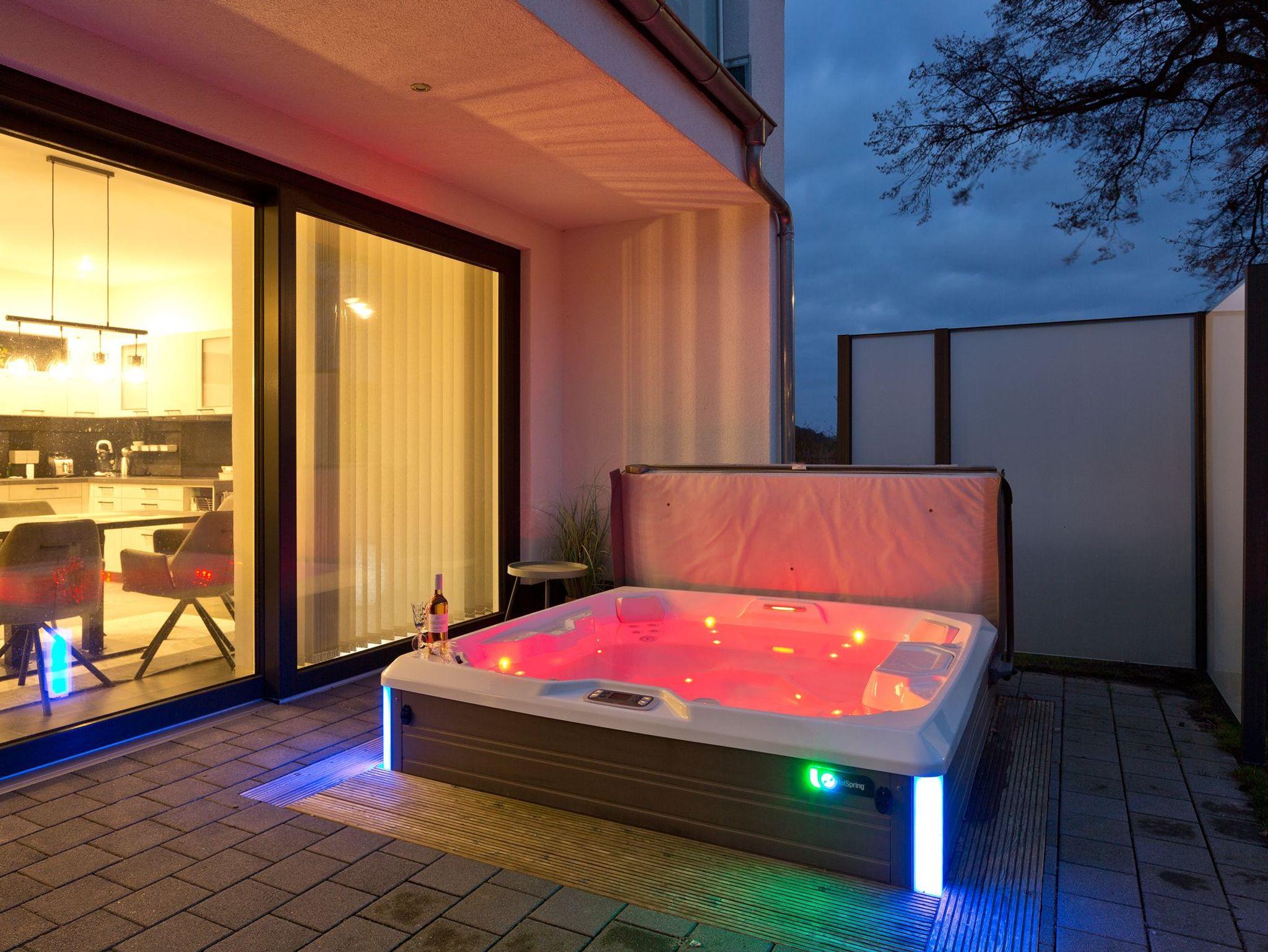 Der Garten mit Terrasse ist der ideale Ort, um die frische Luft zu genießen und entspannte Stunden im Freien zu verbringen. Hier können Sie die Natur hautnah erleben und gemütliche Momente im Freien verbringen. Ein besonderes Highlight der Ferienwohnung ist der Whirlpool, der Ihnen wohltuende Entspannung und Luxus bietet.