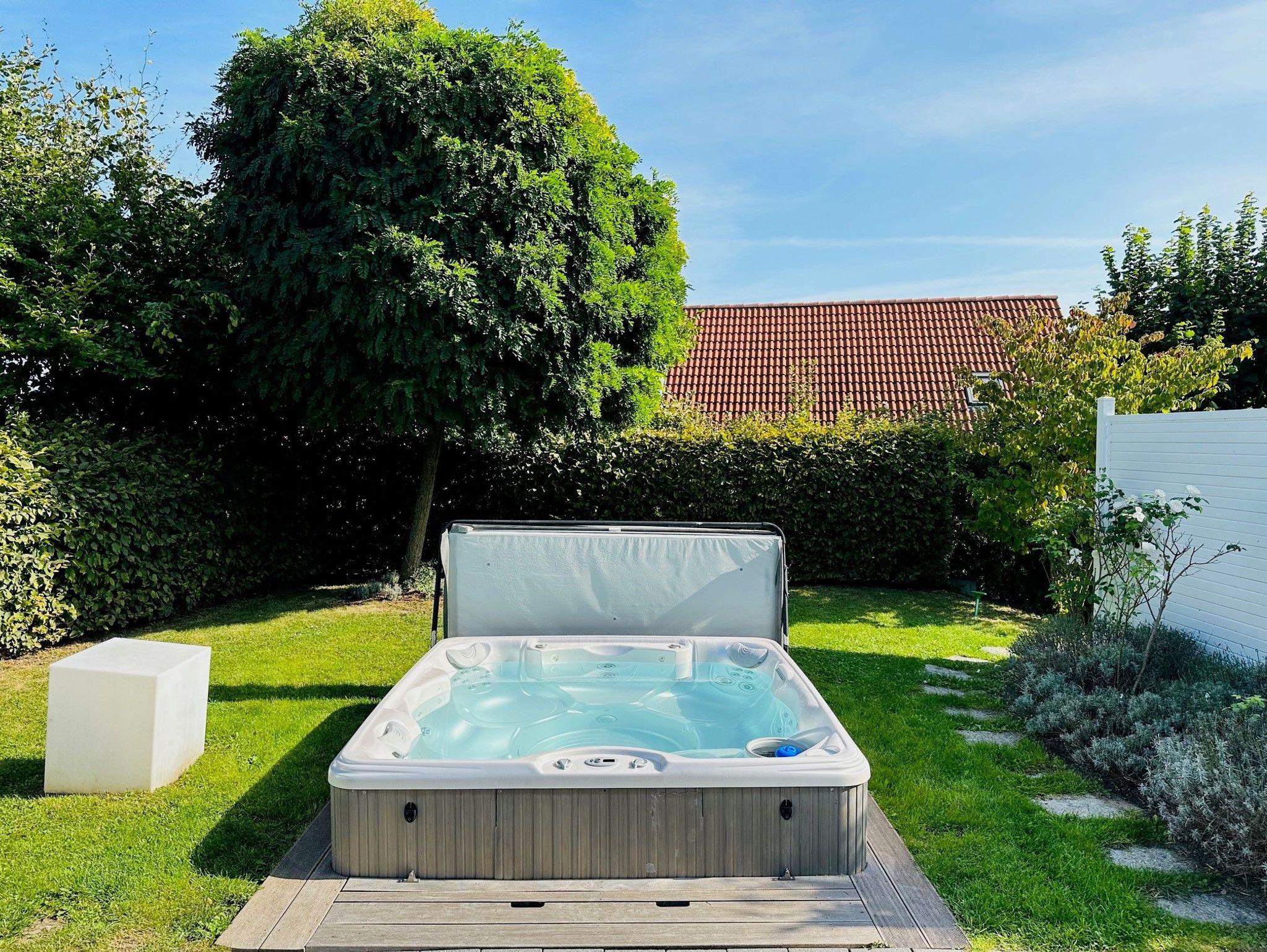 Auf der sonnigen Süd-/Westterrasse animieren ein großer Tisch mit Stühlen und Loungemöbel zum Verweilen oder der ganzjährig beheizte Jacuzzi-Whirlpool zum Relaxen und Entspannen.
