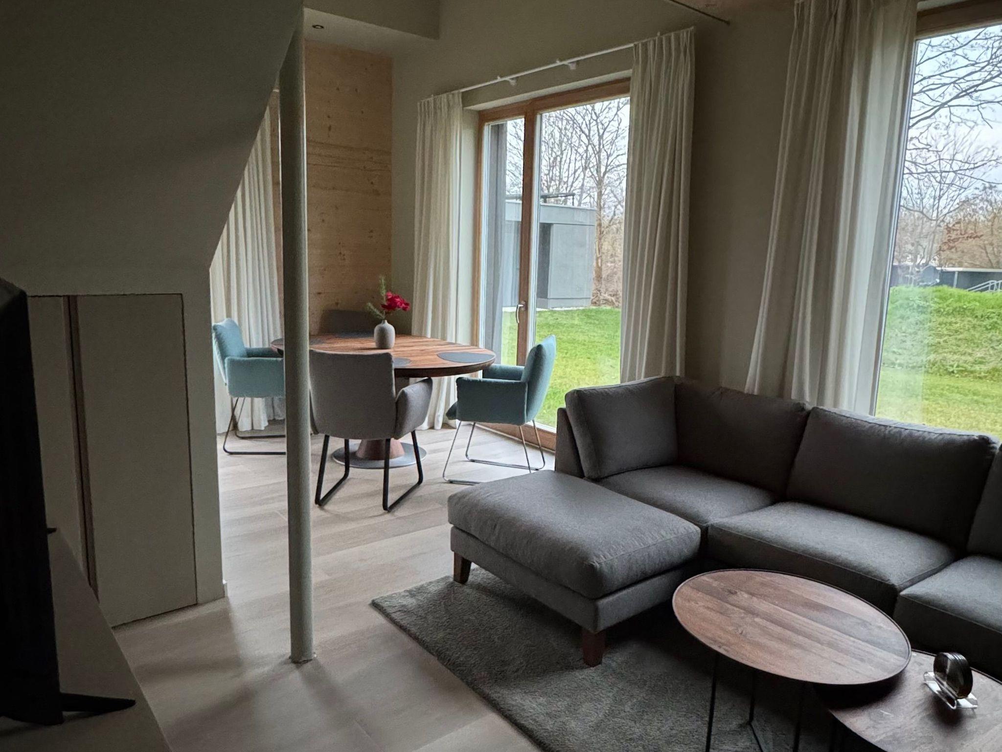 Durch ihre Holzbauweise vereint die ReetLodge ein sehr besonderes Wohnklima mit höchstem Komfort. Unsere drei flexibel kombinierbaren Suiten (801, 802 & 803), die sich jeweils auf zwei Etagen erstrecken, bieten Platz für bis zu 18 Personen. Die ReetLodge kann gesamt oder jede Suite kann einzeln gebucht werden und ist ideal für Freunde, Familien, Firmen oder Interessengruppen. Genießen Sie eine Auszeit oder verlegen Sie Ihr Home Office in die ReetLodge. Gemeinsam nutzbar ist der zubuchbare, lichtdurchflutete Lounge-Bereich mit voll ausgestatteter Küche und einem Kamin (150 Euro/Nacht). Dieser Bereich ist perfekt zum gemeinsamen Kochen, Entspannen oder Arbeiten. Für jede Suite stehen Parkplätze und jeweils ein Abstellraum für beispielsweise Fahrräder oder Golfgepäck zur Verfügung. Zusätzlich kann eine Elektoladestation kann gegen Aufpreis genutzt werden.