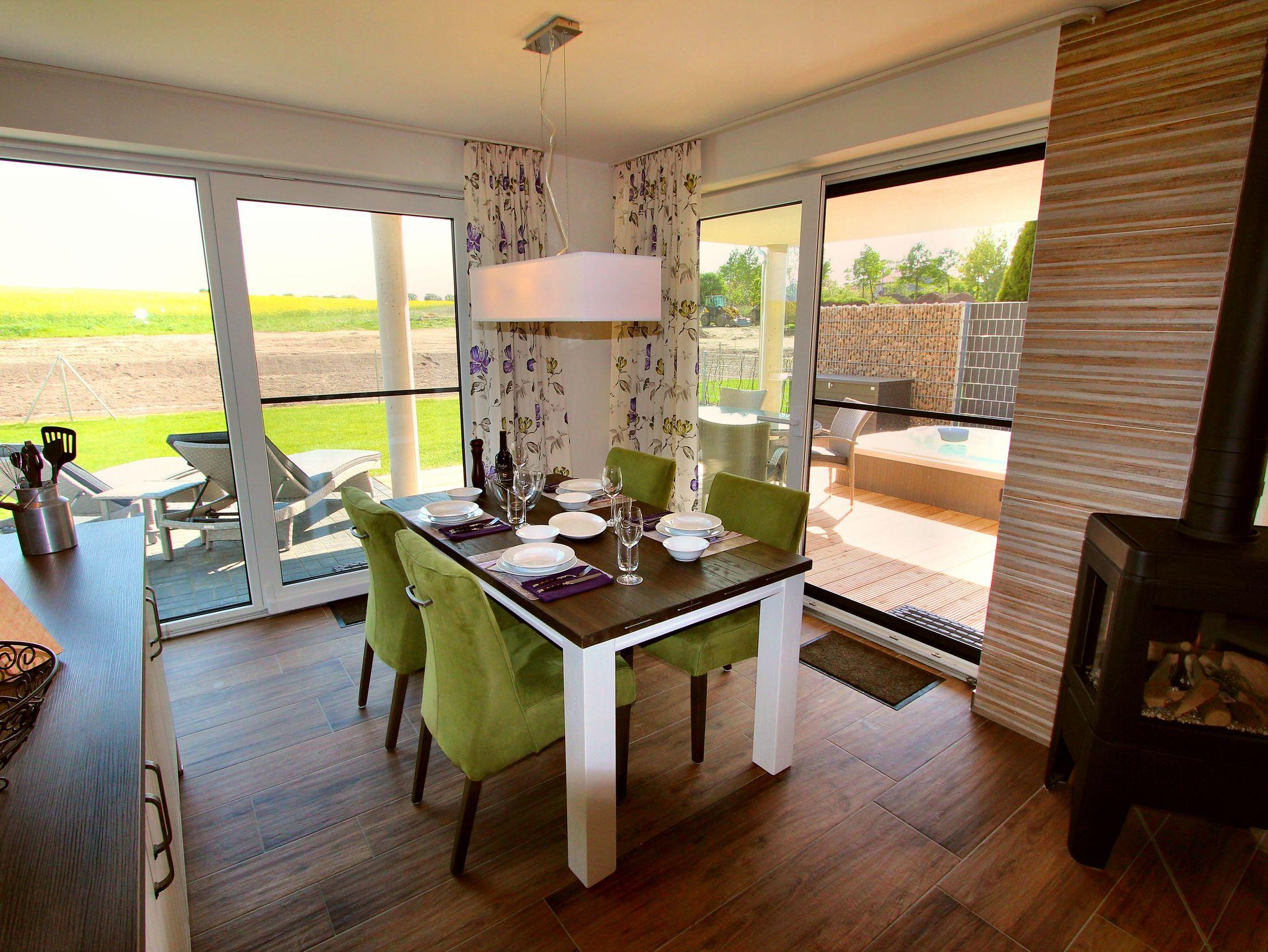 Die Ferienwohnung im Erdgeschoss ist im modernen Landhaus-Stil liebevoll eingerichtet. Sie verfügt über insgesamt 102 m² Wohnfläche, 2 Schlafzimmer, 2 Bäder, Sauna, Wohn- und Essbereich einem Gas Kamin und einer vollausgestatteten, offenen Küche mit einer Kochinsel.