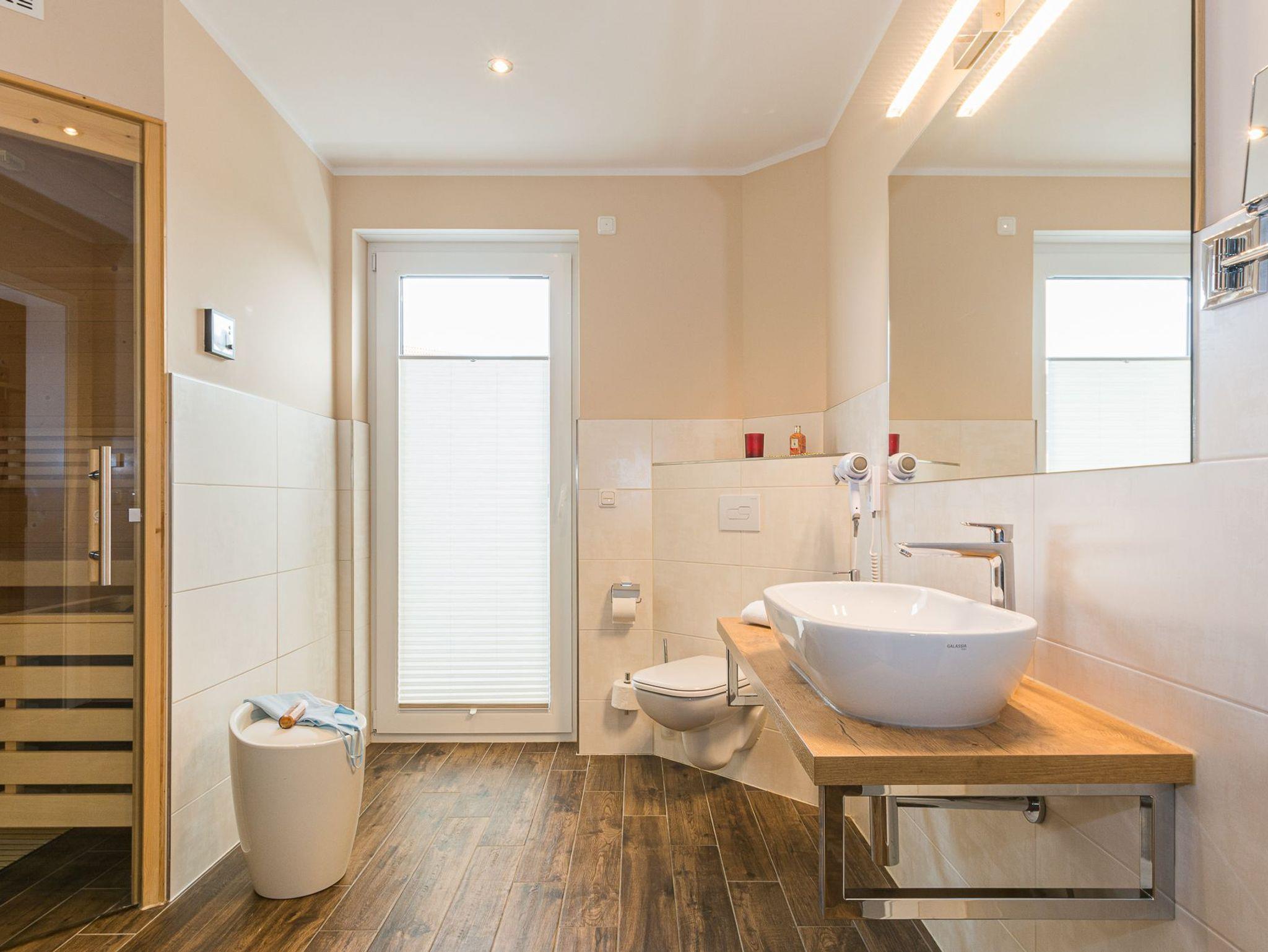 Diese charmante Ferienwohnung bietet Ihnen auf 80 m² Wohnfläche alles, was Sie für einen entspannten Urlaub benötigen. Das geschmackvoll eingerichtete Schlafzimmer und das moderne Bad bieten ausreichend Platz für zwei Personen. Der offene Wohn- und Essbereich mit einem behaglichen Gas-Kamin lädt zum Verweilen und Entspannen ein. Hier können Sie gemütliche Abende verbringen und die Atmosphäre genießen Ein absolutes Highlight ist die hauseigene Sauna, in der Sie sich wunderbar erholen können. Lassen Sie die Sorgen des Alltags hinter sich und tanken Sie neue Energie.