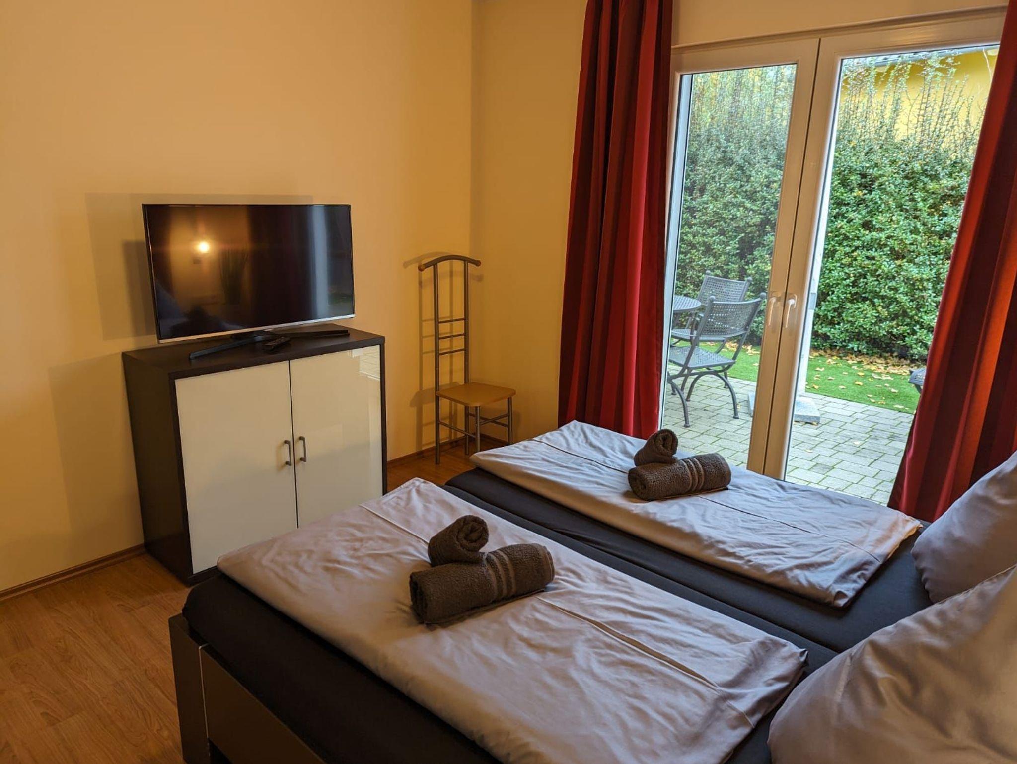 Die gemütlichen Schlafzimmer sind jeweils mit Doppelbett ausgestattet und verfügen über einen Smart-TV. Sie sind mit Laminatboden ausgelegt.