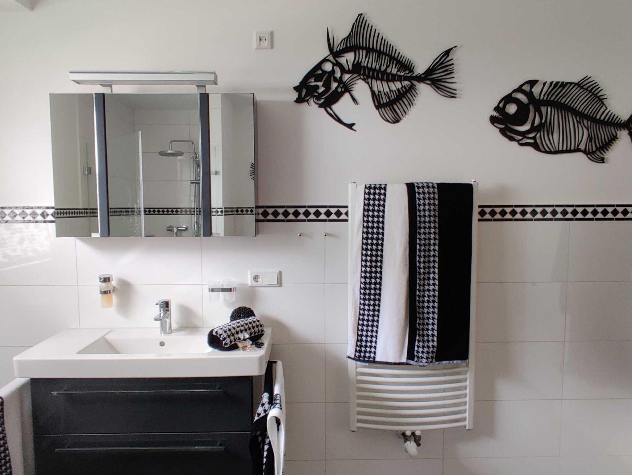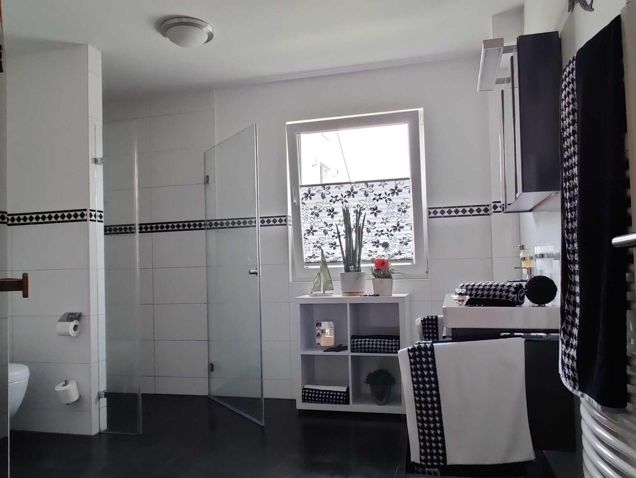 Das Bad ist eines der Highlights unserer Wohnung, die ebenerdige, verglaste Raindance-Wellnessdusche, ein großer exclusiver Designerwaschtisch und ein Handtuchwärmer.