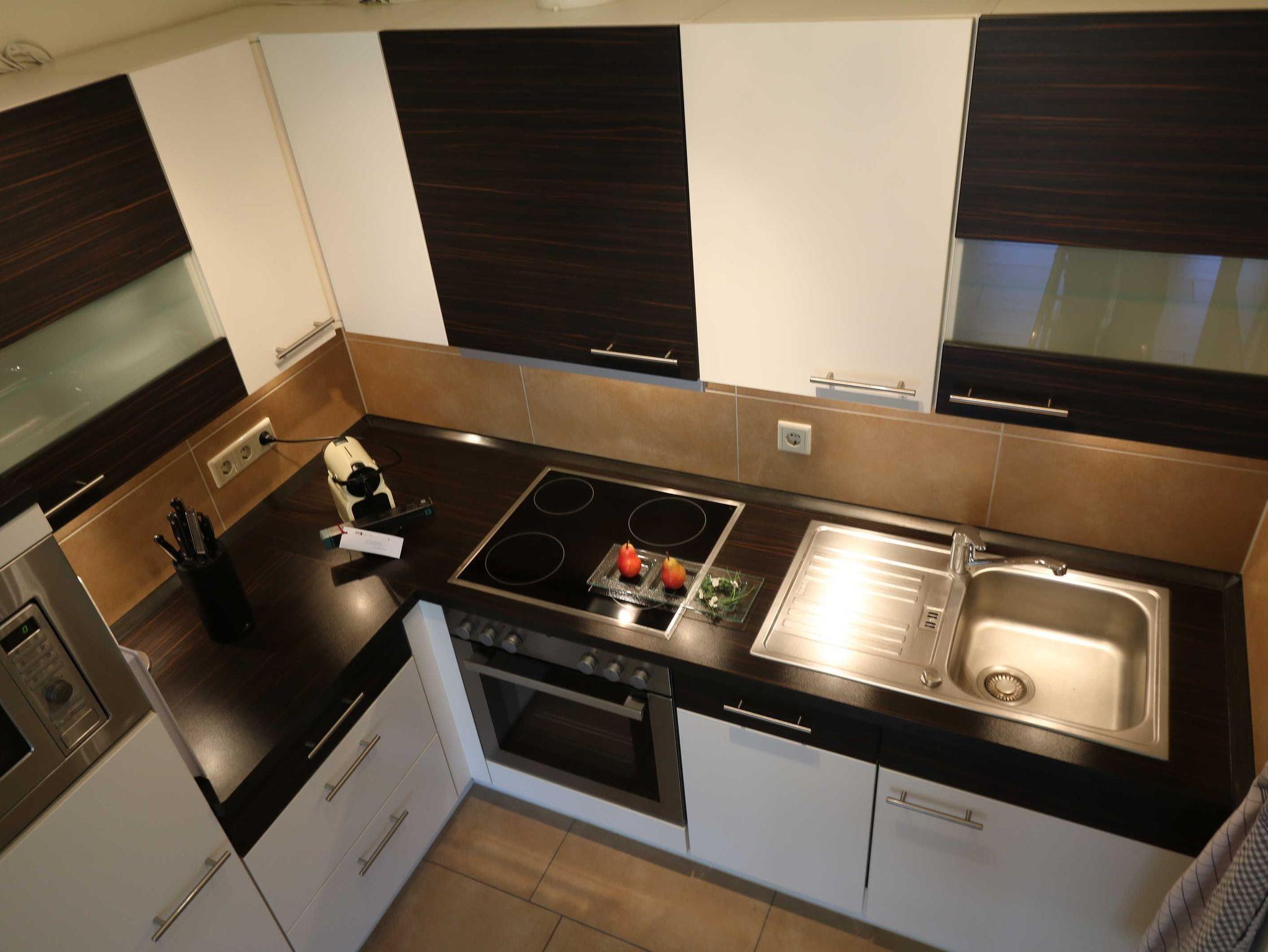 Die modern eingerichtete Wohnung befindet sich im EG unserer Villa. Der offene Wohn/Eßbereich ist so ausgestattet, dass jeder auf seine Kosten kommt. Speisen oder Spielen am Esstisch mit 4 Stühlen. Relaxen auf dem Sofa oder den beiden Clubsesseln vor dem Kamin. Der Fußboden ist mit hochwertigen Fliesen ausgelegt, die eine angenehme Atmosphäre schaffen. Die offene Küche ist voll ausgestattet und läßt keine Wünsche offen.