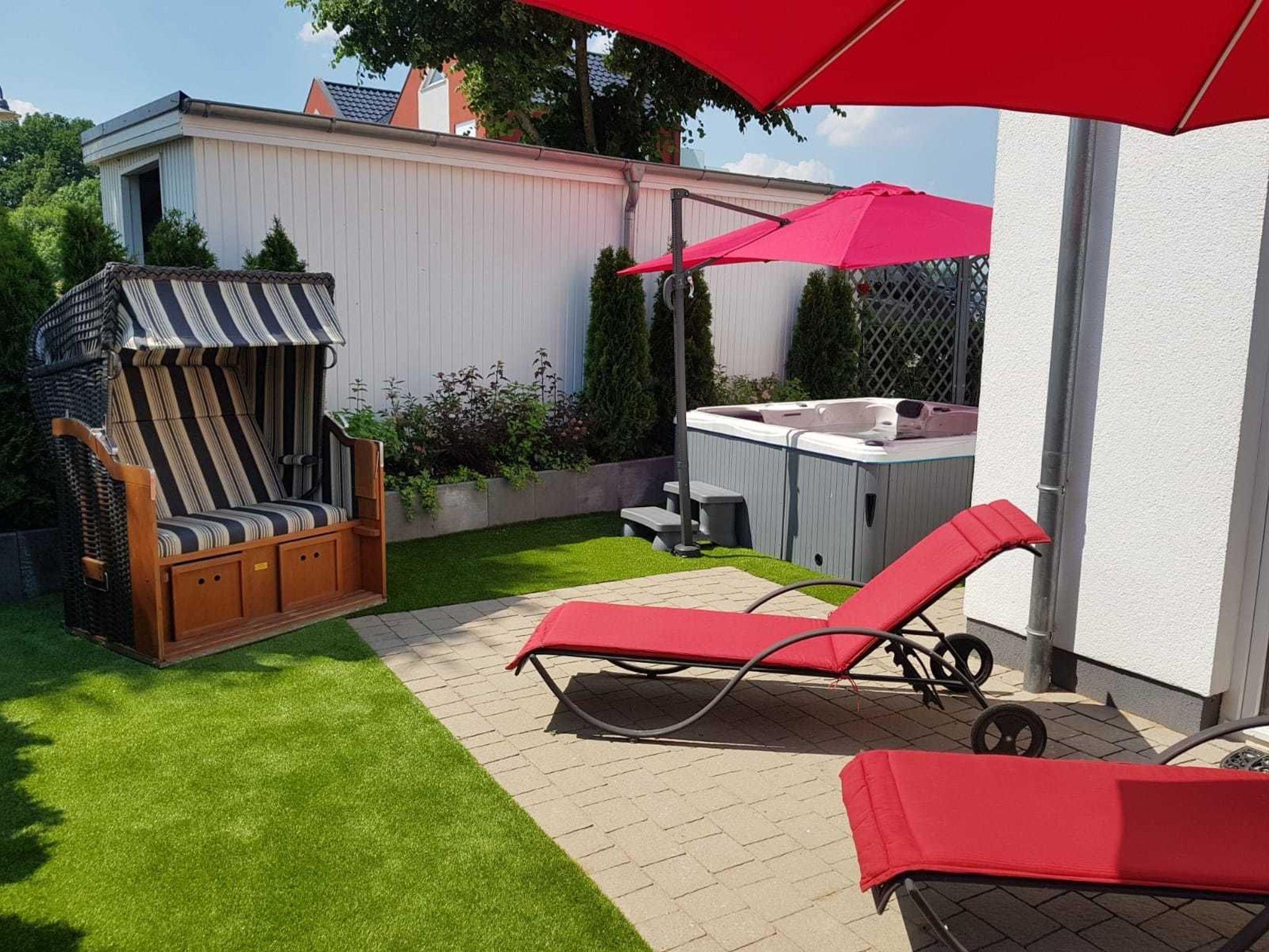 Die Wohnung verfügt über 2 Terrassen, so dass Sie sowohl die Mittag-, als auch die Abendsonne geniessen können. Zwei Gartentische mit 6 Stühlen, ein Strandkorb, 2 Sonnenliegen, ein großer Sonnenschirm und ein Grill laden zum Verweilen ein. Im Whirlpool mit 35° C Wassertemperatur können Sie super entspannen.