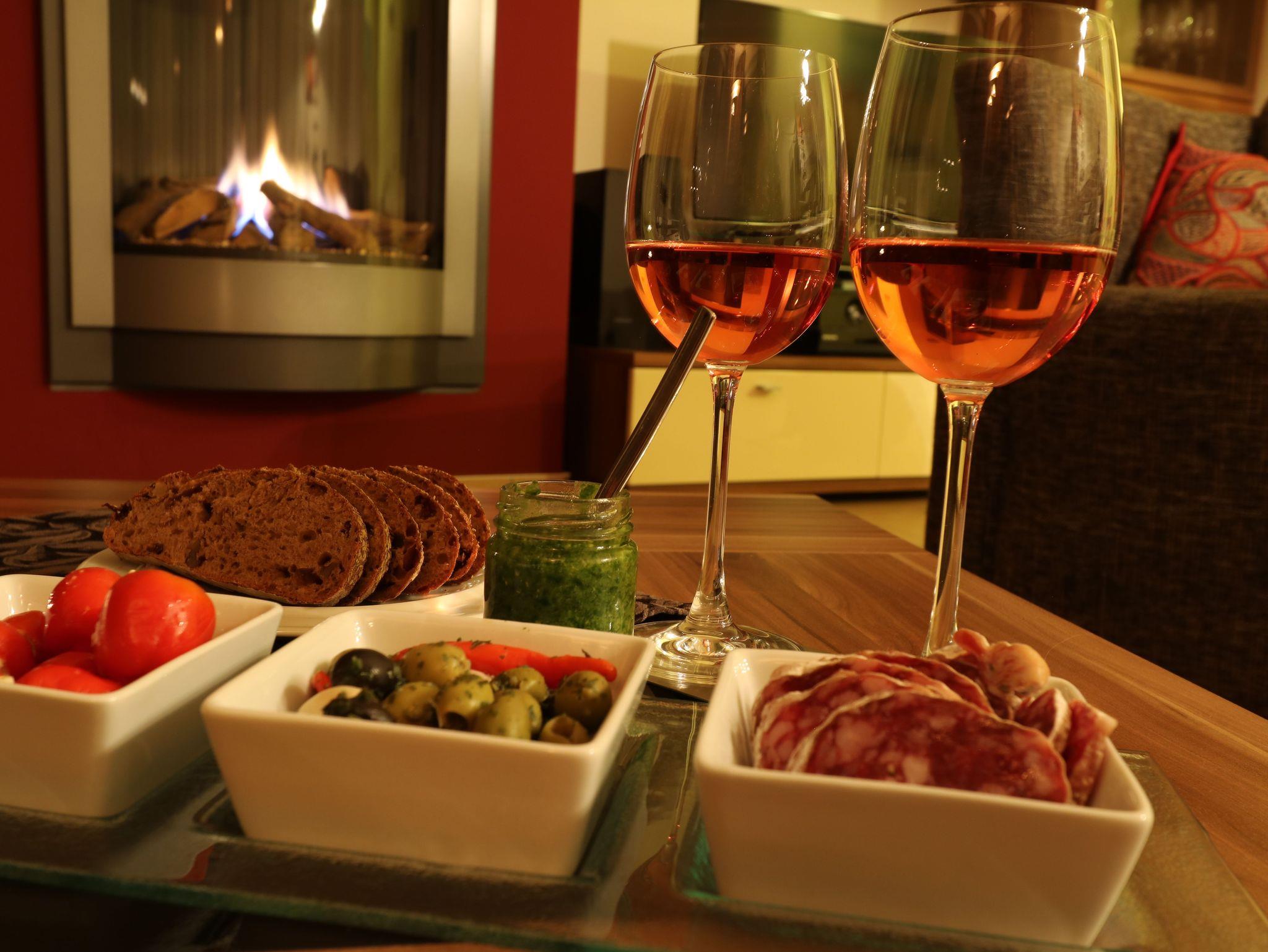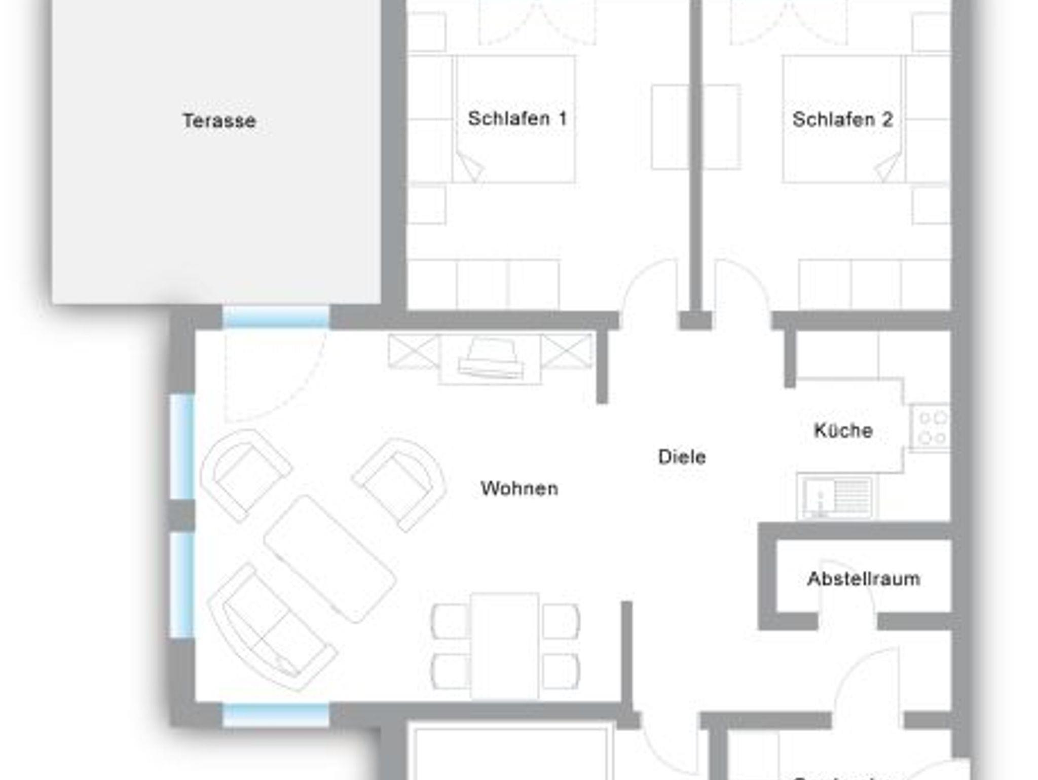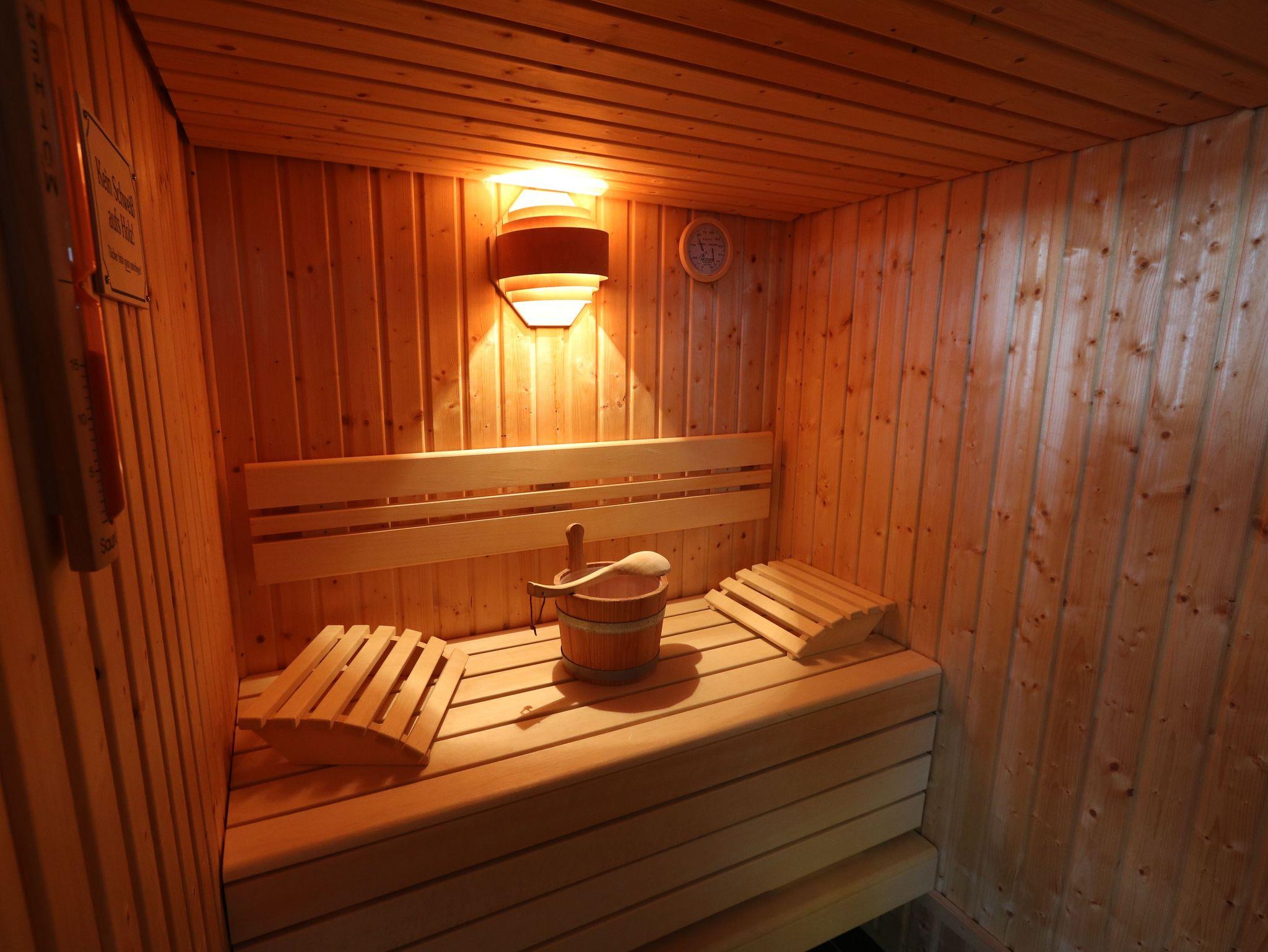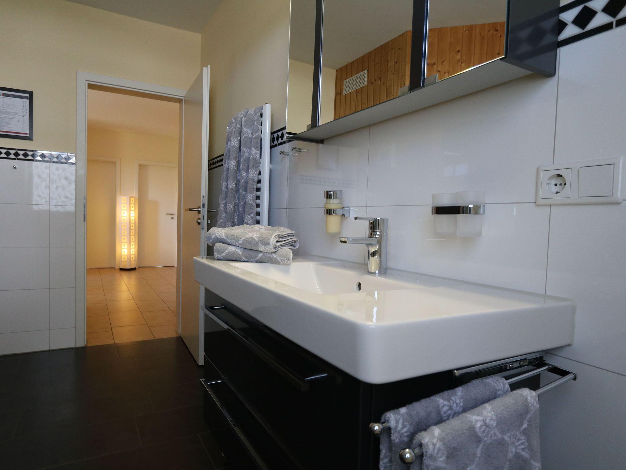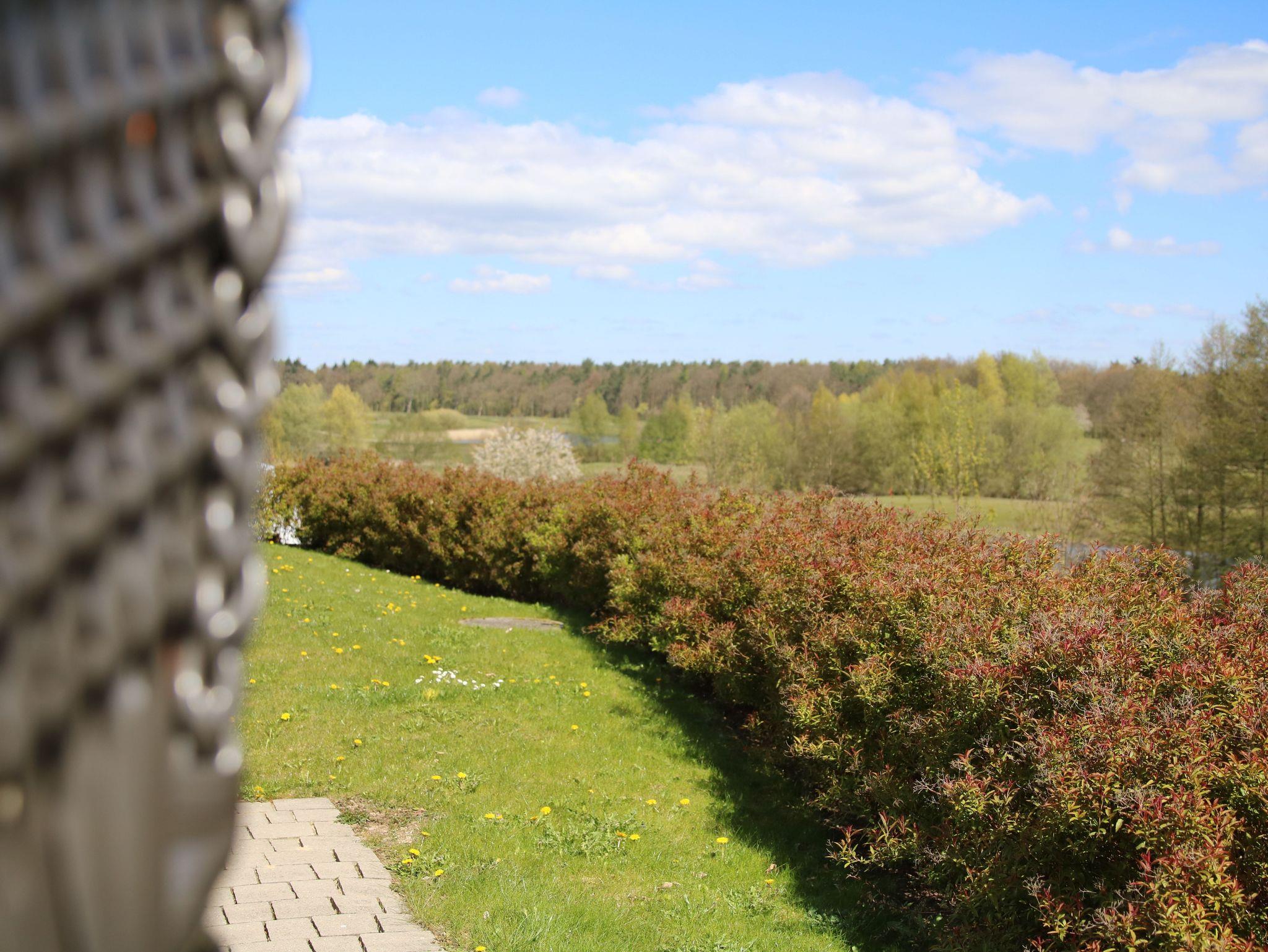 Genießen Sie Ihre Auszeit im Wellnessambiente mit Panoramablick über die Landschaft, und das zu jeder Jahreszeit. Die gemütlich eingerichtete Wohnung befindet sich im Erdgeschoß der Villa Harmonie. Diele, Wohn-/Essbereich mit Küche, 2 Schlafzimmer, Bad und Abstellraum verteilen sich großzügig auf ca. 92 qm. Die Einrichtung und Dekoration sind mit viel Liebe zum Detail aufeinander abgestimmt, schaffen ein wohnliches Ambiente und tragen so zu Wohlbehagen, guter Laune und Frohsinn bei. Im offenen Wohn-/Essbereich entspannen Sie auf dem Sofa vor dem Kamin, der Esstisch mit 4 Stühlen lädt zum gemütlichen Essen ein oder auch zum geselligen Beisammensein bei Gesellschaftspielen. Flatscreen-TV und DVD-Player sorgen für Unterhaltung. Die Ausstattung der offenen Einbauküche lässt keine Wünsche offen: Geschirr und Besteck sind ausreichend vorhanden. Weiterhin beinhaltet die Küche einen Herd mit Ceran-Kochfeld und Umluft-Backofen, ein Raclette und eine Mikrowelle für die schnelle Küche, eine Kühl/Gefrierkombination und eine Spülmaschine. Die gemütlichen Schlafzimmer sind jeweils mit Doppelbett, 2 Nachttischen und Kommode ausgestattet. In den dreiteiligen Schlafzimmerschränken lässt sich der Inhalt des Reisegepäcks nebst Koffer spielend verstauen. Beide Schlafzimmer verfügen über einen Flatscreen-TV. Die Laminatfußböden sorgen für eine reizarme Atemluft, die Fliegengitter für ruhige Nächte bei geöffnetem Fenster. Das Bad ist eines der Highlights dieser Wohnung, denn hier befindet sich ein kleiner SPA-Bereich. Die Familiensauna, die ebenerdige verglaste Raindance-Wellnessdusche, der große Designerwaschtisch und der Handtuchwärmer lassen keine Wünsche offen. Auf der umlaufenden Terrasse können Sie sowohl in der Morgen-, als auch in der Mittagssonne die phantastische Aussicht auf das nahe Wäldchen und den Golfplatz genießen. Der Gartentisch mit 4 Stühlen, 2 Gartenliegen, der Strandkorb und der große Sonnenschirm laden zum Verweilen ein. Wie wär's mit einem leckeren Barbecue? - der Grill wartet schon. Stellen Sie Ihre Fahrräder und Golfbags gerne im abschließbaren Schuppen unter. Ihr Fahrzeug parken Sie auf dem eigenen Parkplatz direkt neben dem Haus. Waschmaschine und Wäschetrockner finden Sie im Hauswirtschaftsraum zur kostenlosen Nutzung.