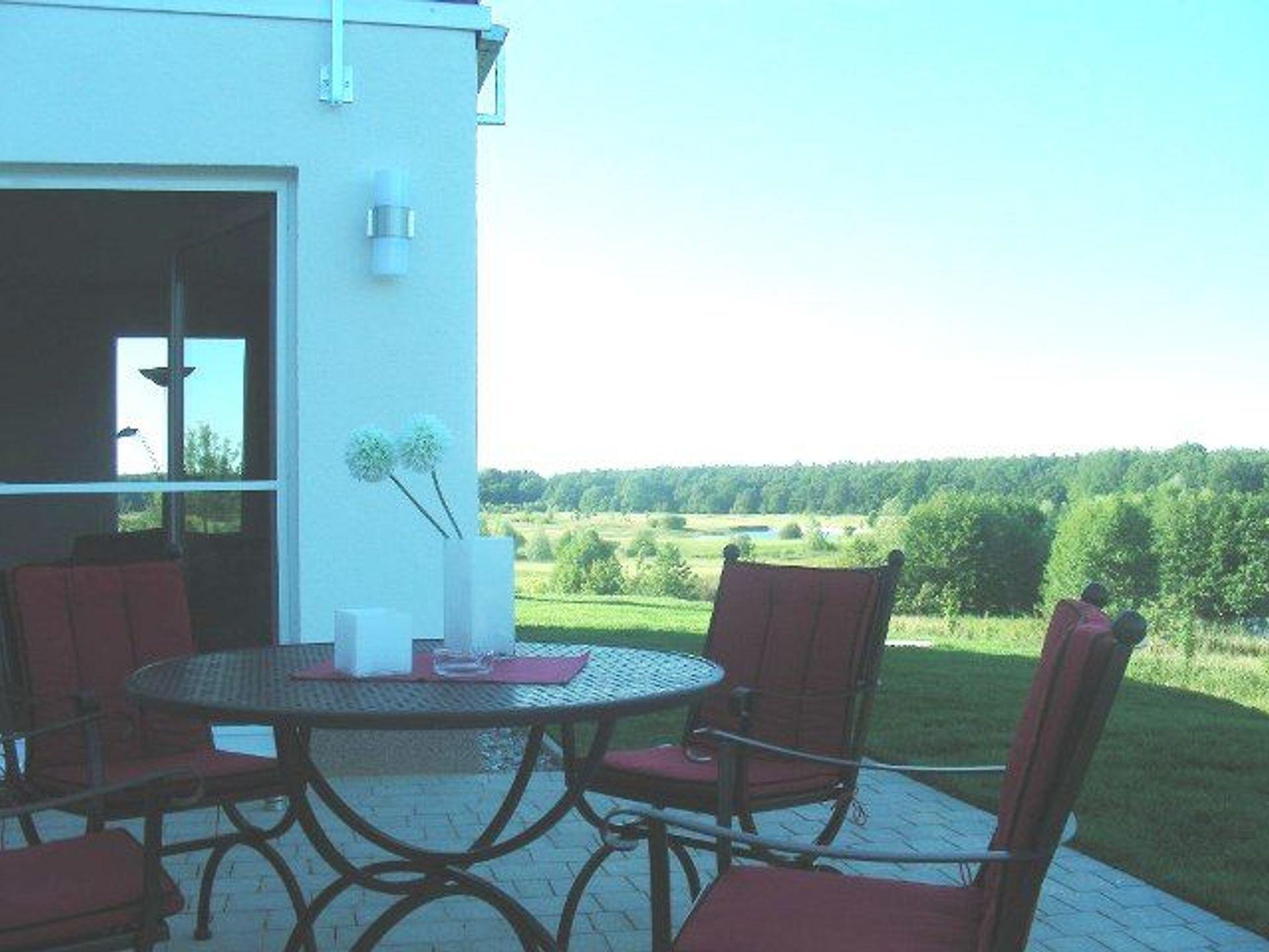 Welche Wünsche haben Sie an Ihr Urlaubsdomizil, in dem Sie Ihre schönsten Tage des Jahres verbringen? Wie wär's z.B. mit Entspannen in der eigenen Sauna? Duschen unter einem großen Regenschauerduschkopf? -ein Gefühl wie ein warmer Sommerregen. Kuscheln vor dem Kaminfeuer im Wohnzimmer? Frühstücken auf der Terrasse mit Blick auf den Golfplatz und am Abend vielleicht grillen oder im Strandkorb auf der Terrasse die Zeit vergessen? Kurz- sich rundum wohlfühlen. Alles das und noch vieles mehr Ihnen die komfortable, stilvoll eingerichtete Ferienwohnung, eine von vier Ferienwohnungen in der Villa Harmonie unmittelbar am Schloss Fleesensee.