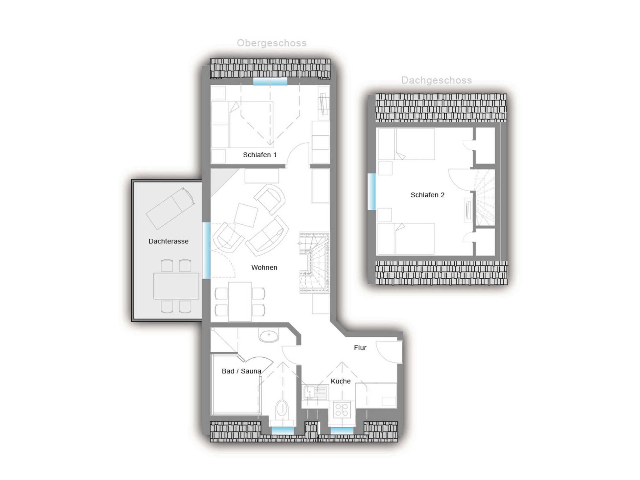 Die Wohnung verteilt sich über 2 gemütliche Ebenen im Ober-und Dachgeschoss.