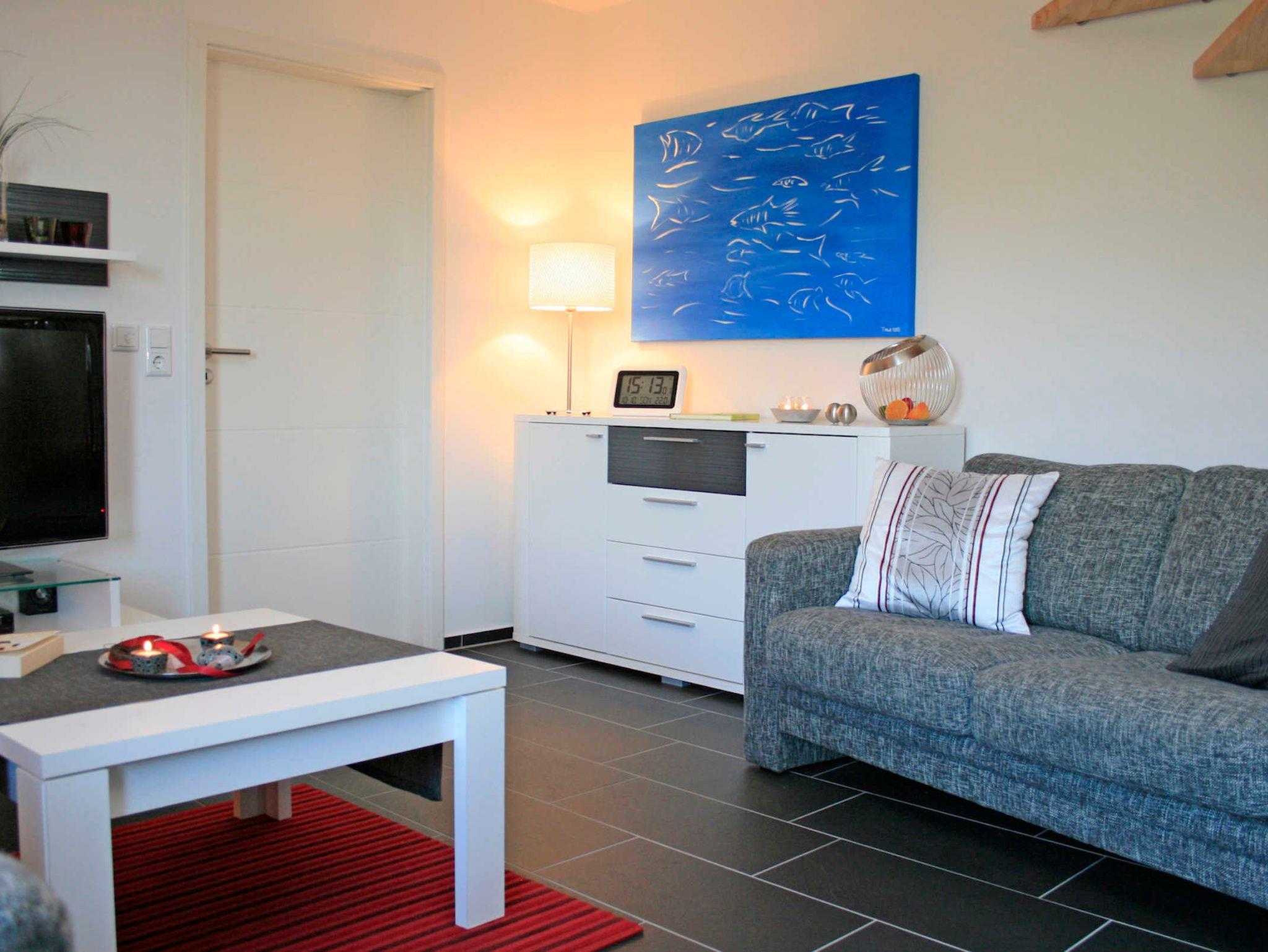 Der moderne Wohnbereich verfügt neben einer Couch mit 2 Sesseln über einen LCD TV, eine Heimkinoanlage mit DVD/CD-Spieler und einen Kamin, vor dem Sie es sich an kalten Tagen gemütlich machen können.