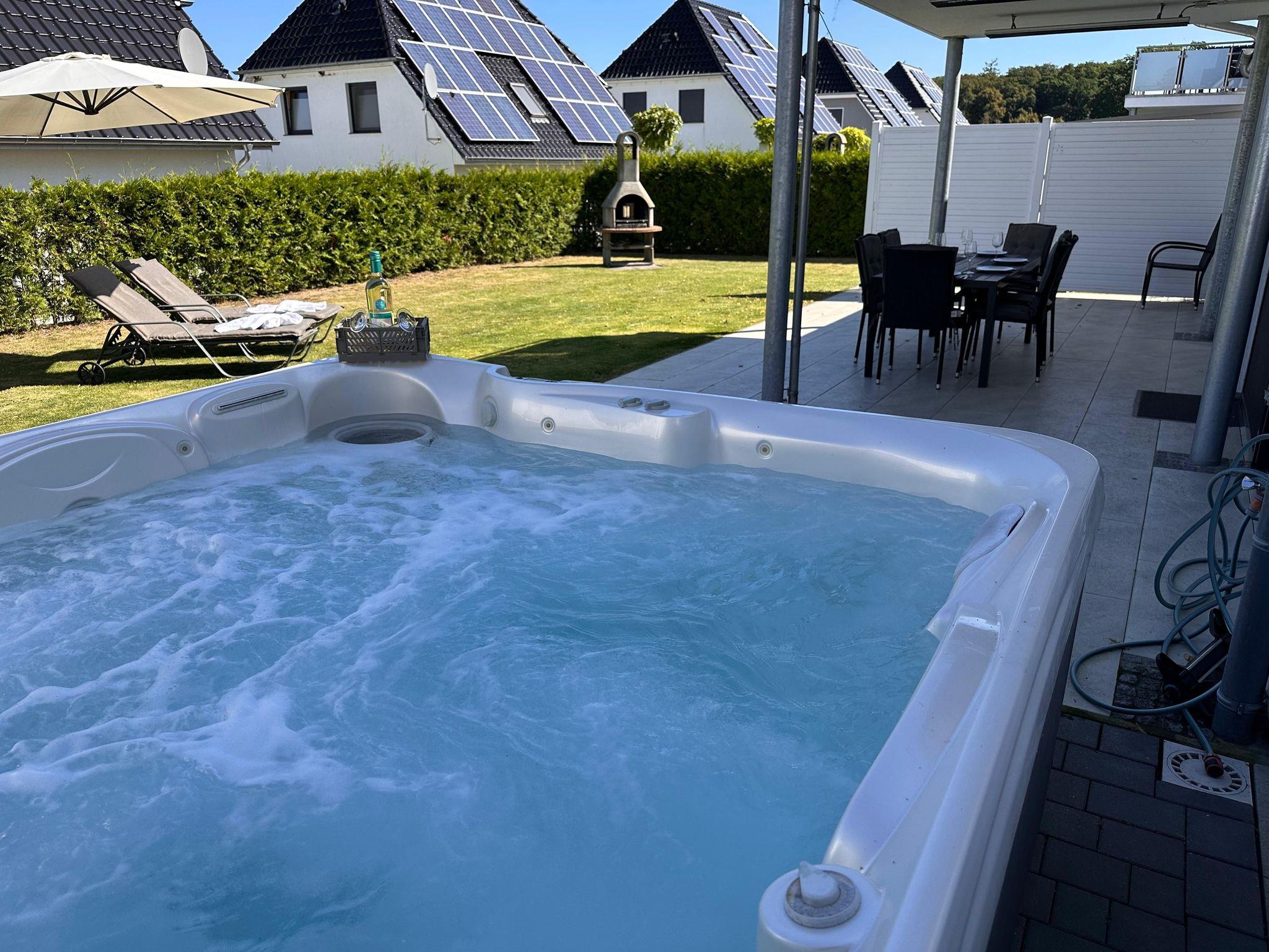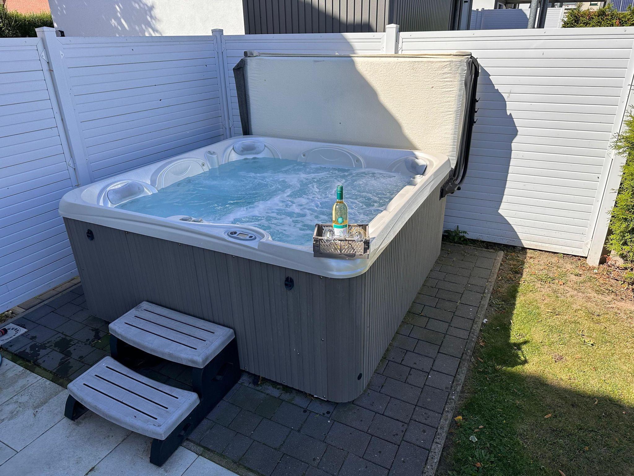 Der ganzjährig beheizte Außenwhirlpool mit 38 Grad Wassertemperatur und Hydromassagejets ist nur ein Highlight von vielen. In der Kombination Sauna, Gaskamin und Whirlpool wird Ihnen das Herz aufgehen.