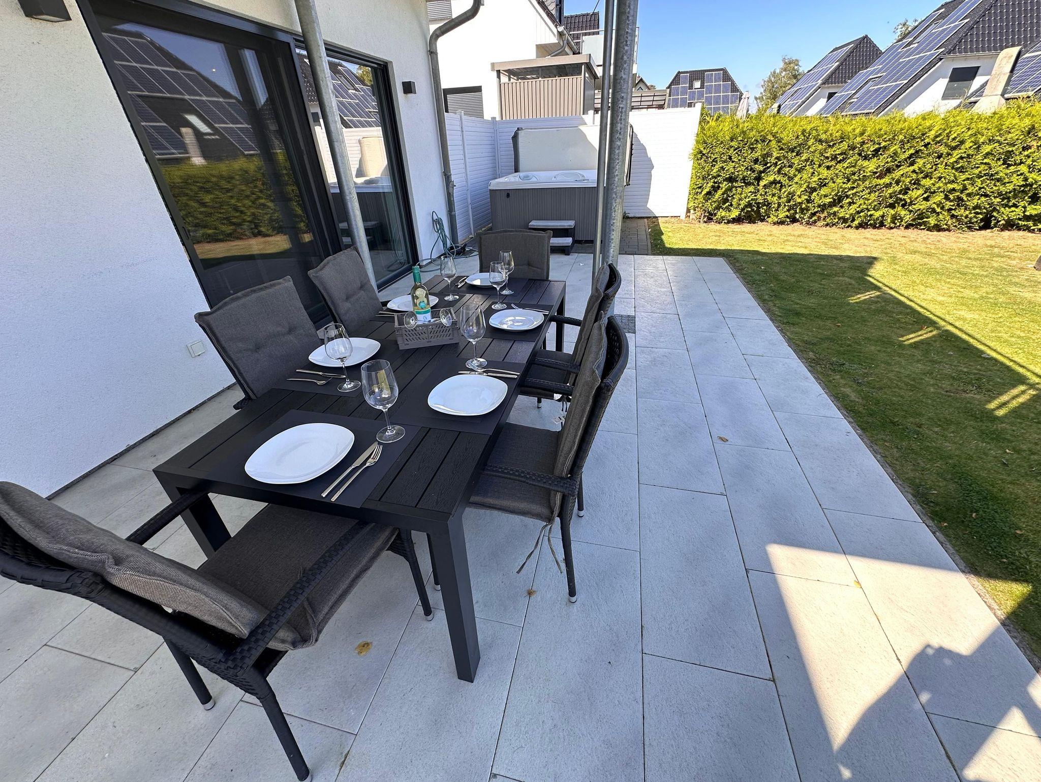 Unsere Luxus-Villa möchte mit 3 Schlafzimmern, 2 Bädern, Sauna & ganzjährigem 38 Grad Außenwhirlpool, und eingezäunten Garten bei Ihnen punkten.
