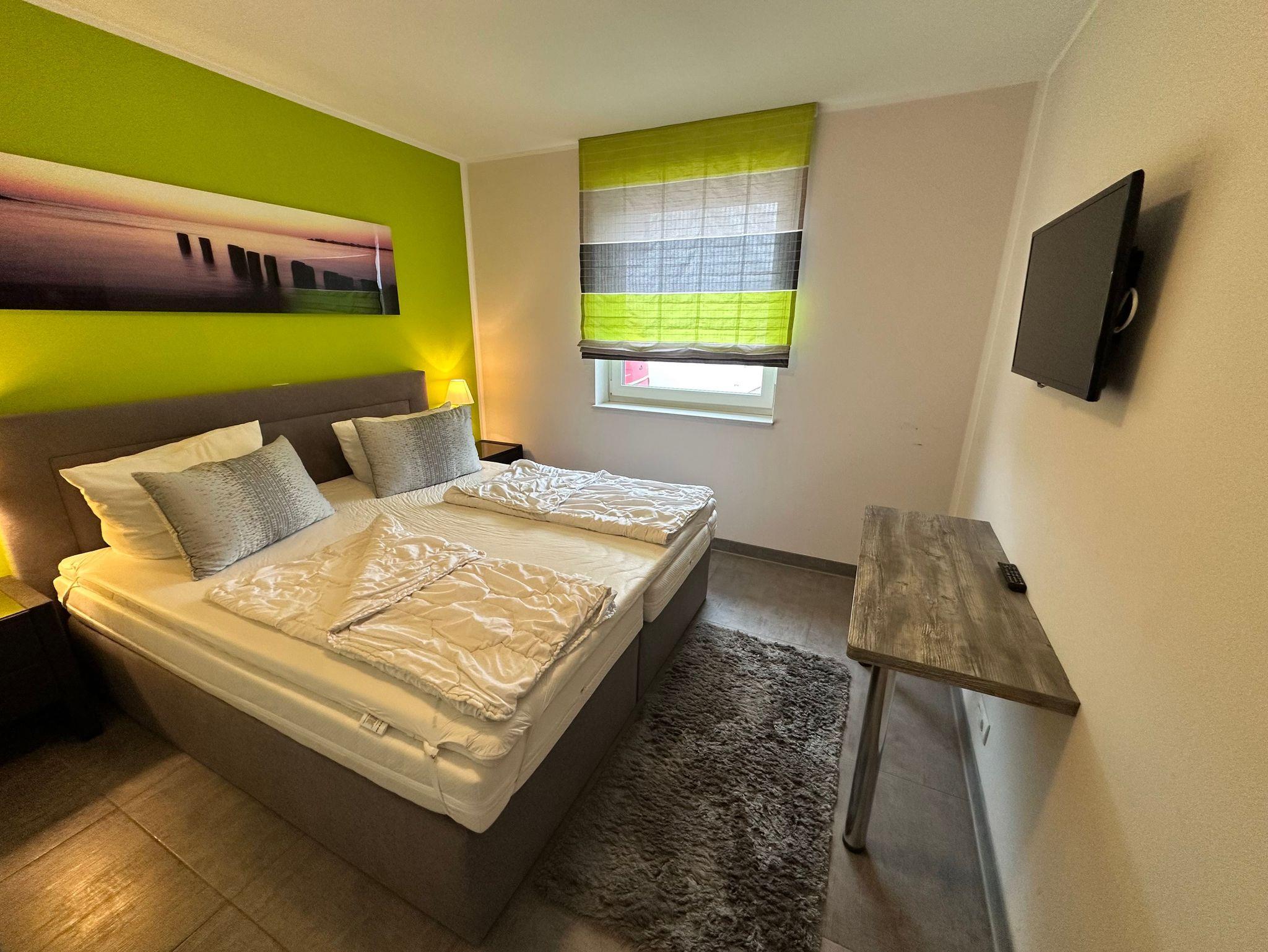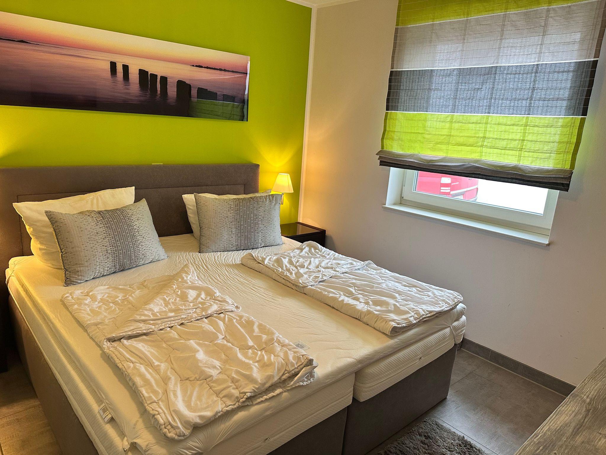 Die 4 Schlafzimmer verfügen ebenfalls alle über Flat-TV und sind jeweils mit 180 x 200 cm großen Boxspringbetten ausgestattet.