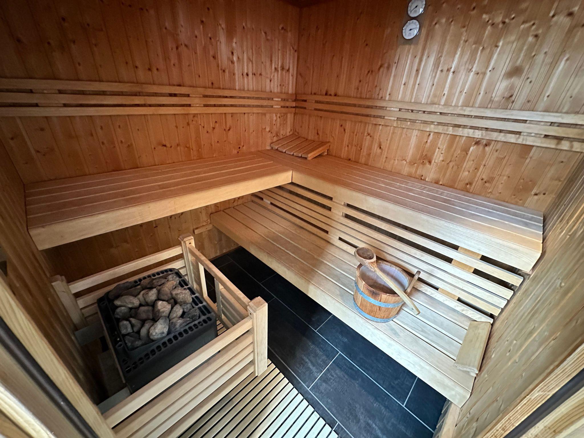 Der ganzjährig beheizte Außenwhirlpool mit 38 Grad Wassertemperatur und Hydromassagejets ist nur ein Highlight von vielen. In der Kombination Sauna, Gaskamin und Whirlpool wird Ihnen das Herz aufgehen.