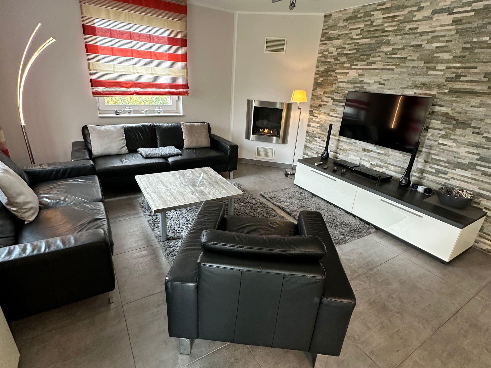 Lässig auf dem Sofa liegend, kann man komplett entspannen mit Musik oder Sky TV und einem Gaskamin.