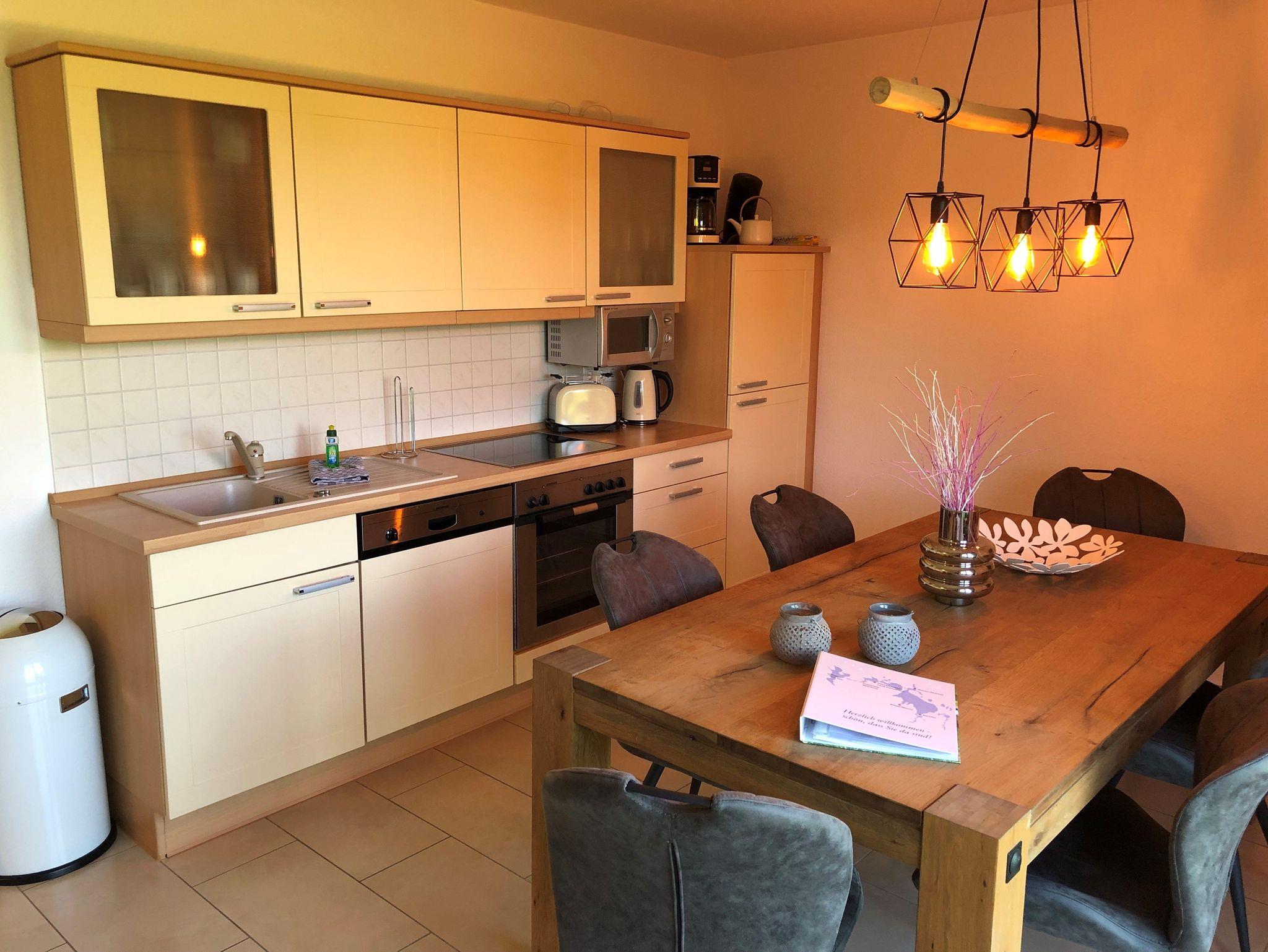 Auf großzügigen 90 m² erwartet Sie ein offener Wohn- und Essbereich mit integrierter Küche, der zu gemütlichen Stunden einlädt. Die Wohnung verfügt über zwei Schlafzimmer mit komfortablen Doppelbetten, ein Badezimmer mit Dusche und Badewanne sowie über ein zusätzliches Gäste-WC.