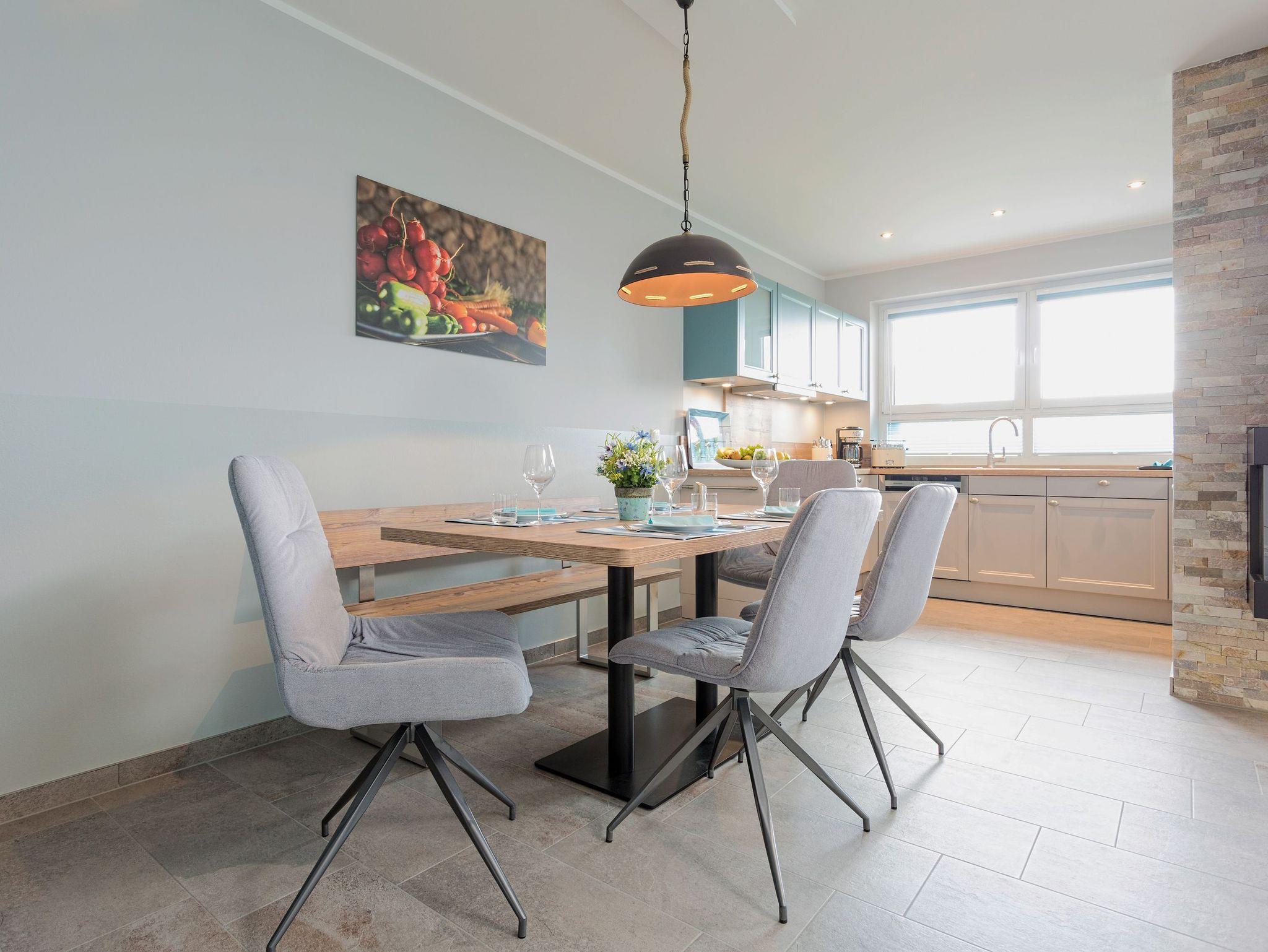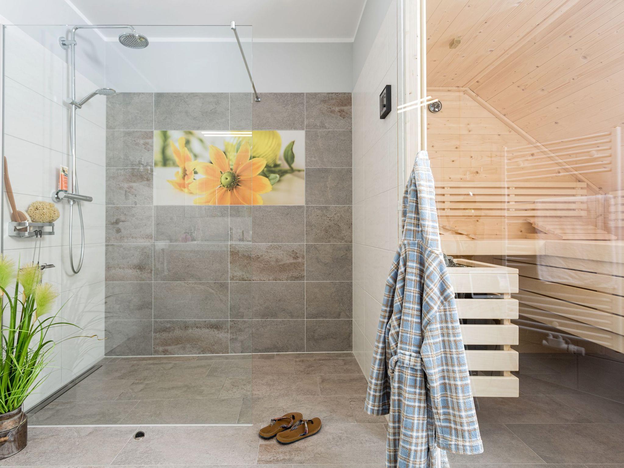 Herzlich willkommen in diesem einladenden Ferienhaus, das perfekt auf Ihre Bedürfnisse zugeschnitten ist. Mit 130m² Wohnfläche bietet das Ferienhaus ausreichend Platz für Sie und Ihre Familie oder Freunde. Der offene Wohn- und Essbereich lädt zum Verweilen und Entspannen ein. Zwei Badezimmer bieten Komfort und Bequemlichkeit. Eines der badezimmer ist mit einer eigenen Sauna ausgestattet. Die drei Schlafzimmer bieten gemütliche Rückzugsorte für erholsame Nächte.
