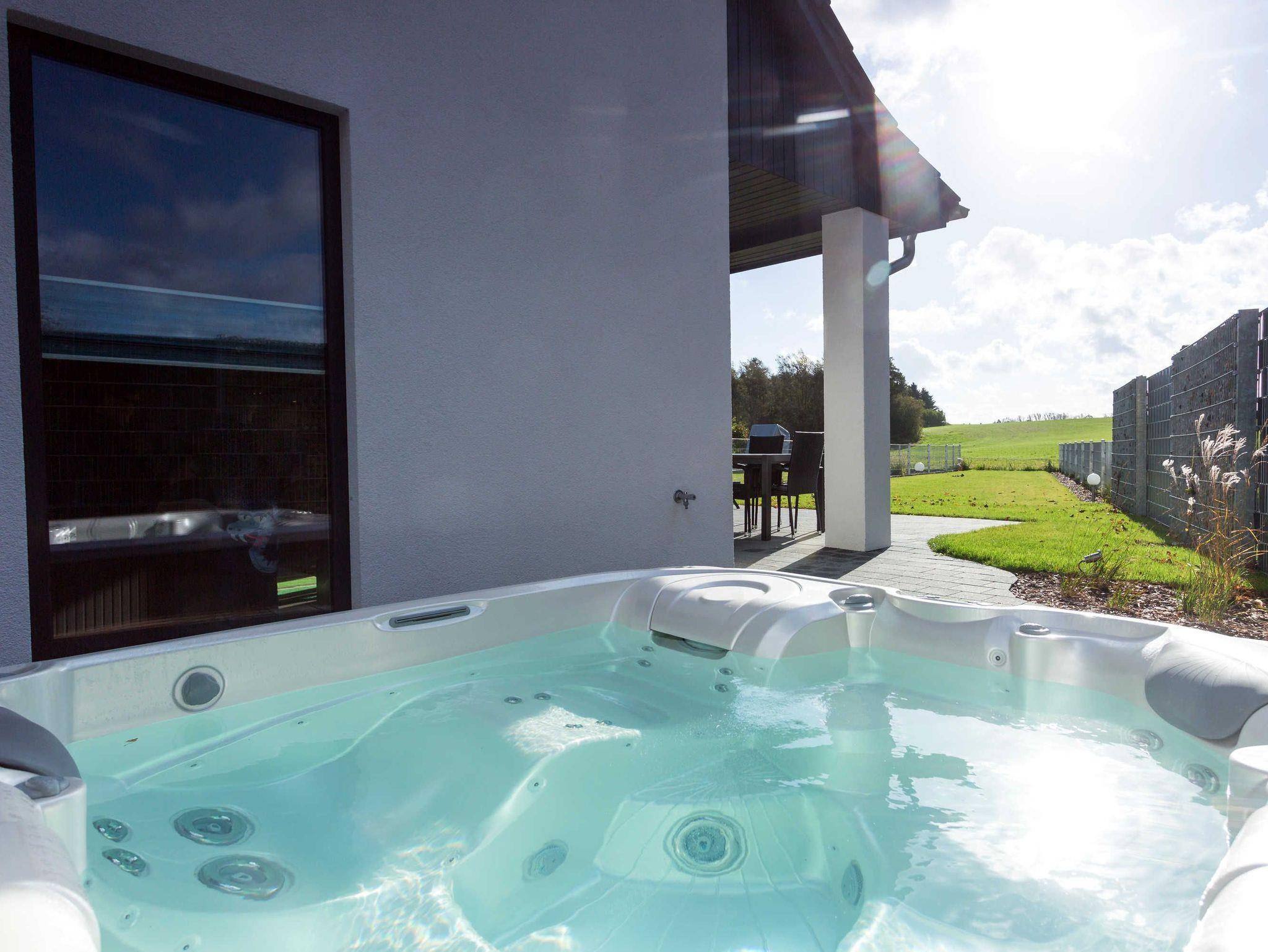 Ferienhaus mit eigenem Außen Whirlpool, Sauna, 3 Schlafzimmern, 2 Bäder, Terrasse und Garten, Hunde willkommen.