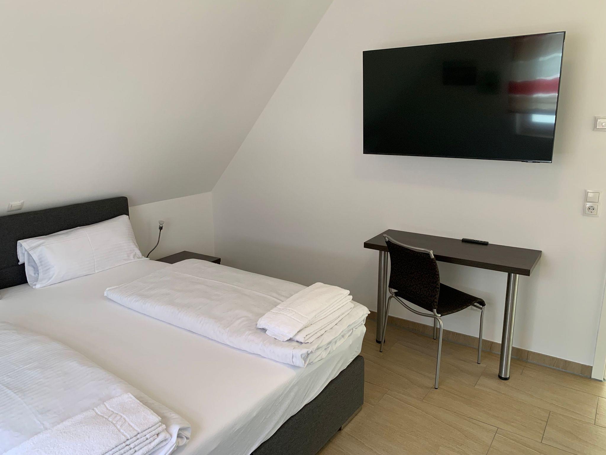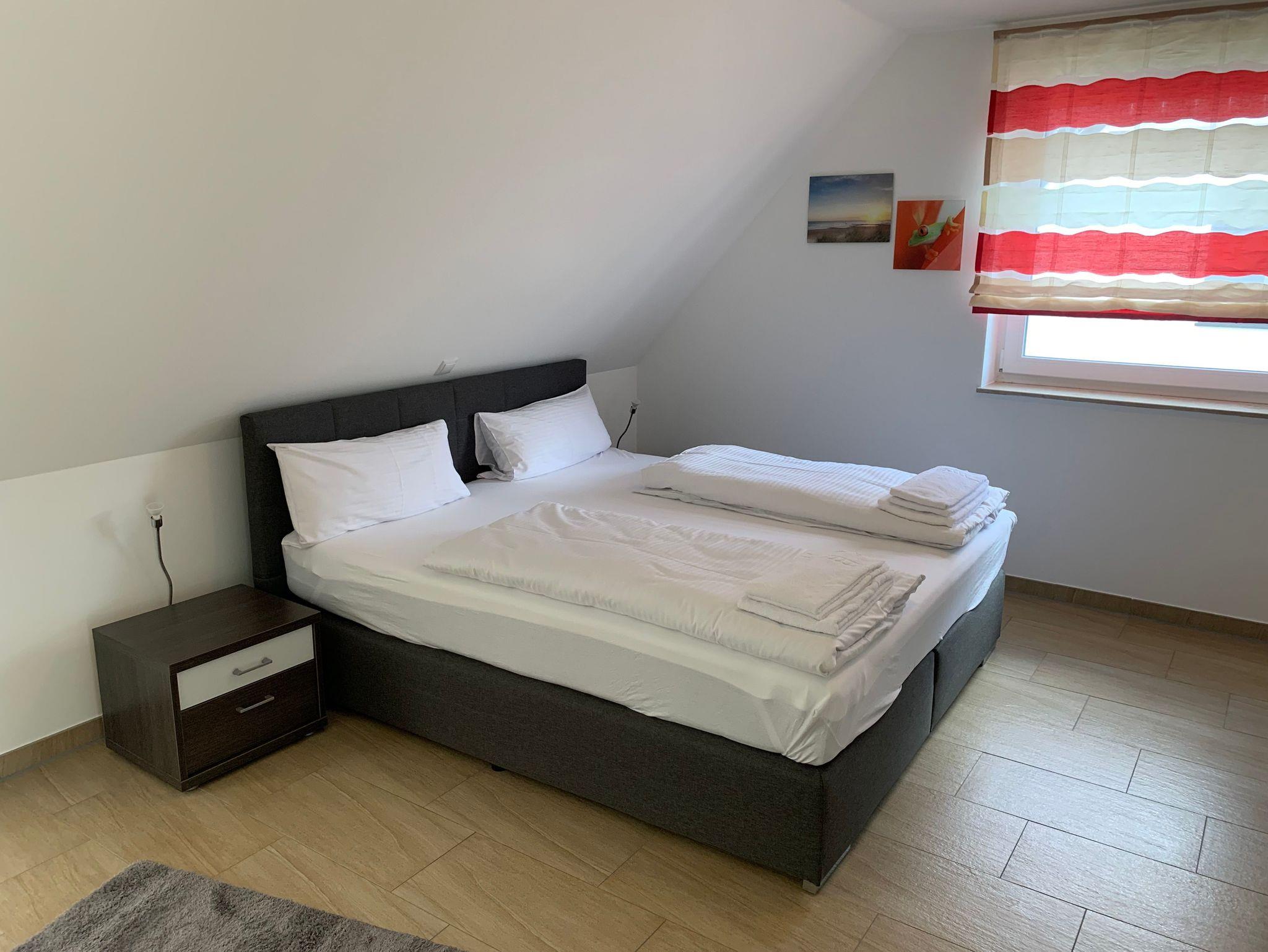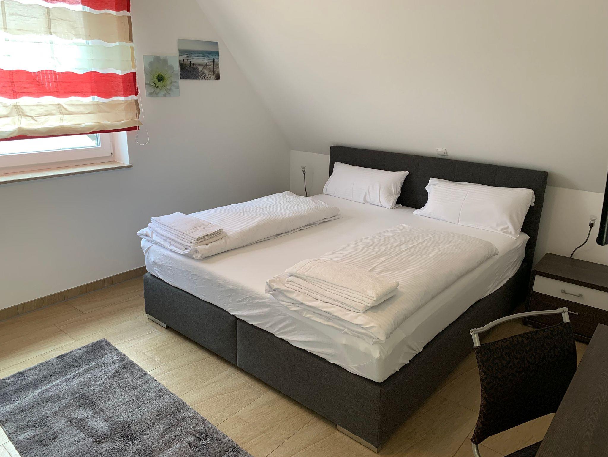 Die 3 Schlafzimmer verfügen ebenfalls alle über Flat-TV und sind jeweils mit 180 x 200 cm großen Boxspringbetten ausgestattet.