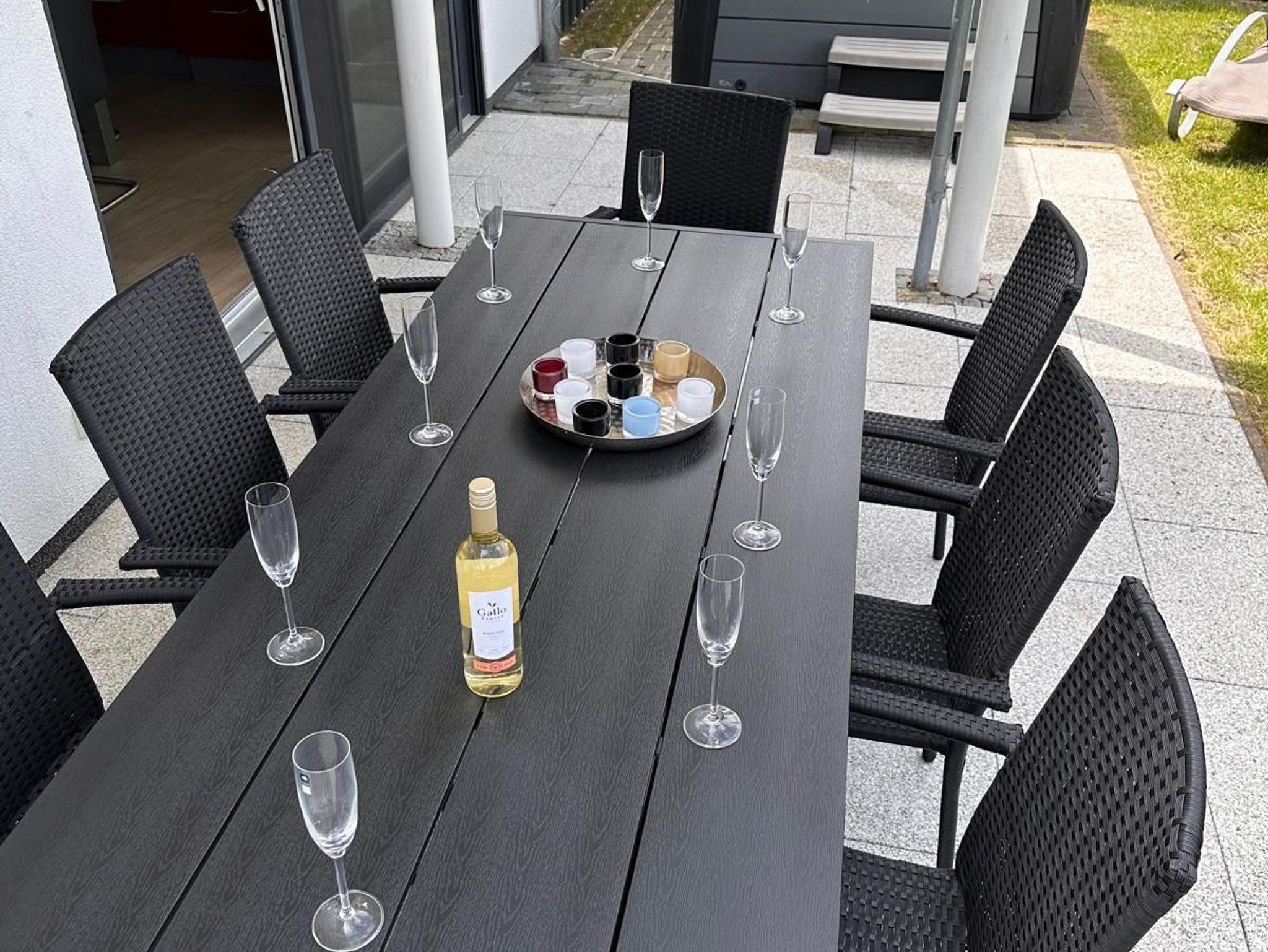 Unsere Luxus-Villa möchte mit 3 Schlafzimmern, 2 Bädern, Sauna & ganzjährigem 38 Grad Außenwhirlpool, und eingezäunten Garten bei Ihnen punkten.
