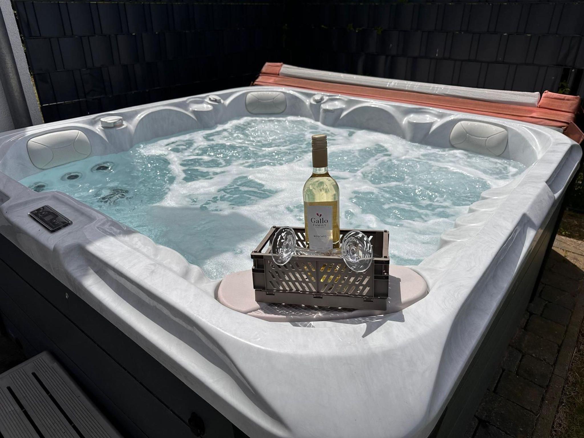 Der ganzjährig beheizte Außenwhirlpool mit 38 Grad Wassertemperatur und Hydromassagejets ist nur ein Highlight von vielen. In der Kombination Sauna, Gaskamin und Whirlpool wird Ihnen das Herz aufgehen.