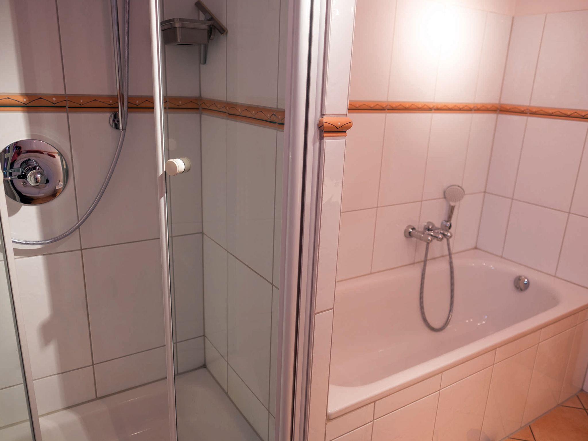 ?Das separate Schlafzimmer verfügt über ein Doppelbett und der geräumige Kleiderschrank ist auch bei ?Garderobe für einen längeren Aufenthalt nicht überfordert. Das Badezimmer bietet neben einer ?Dusche auch eine Badewanne, in der es sich herrlich entspannen lässt.