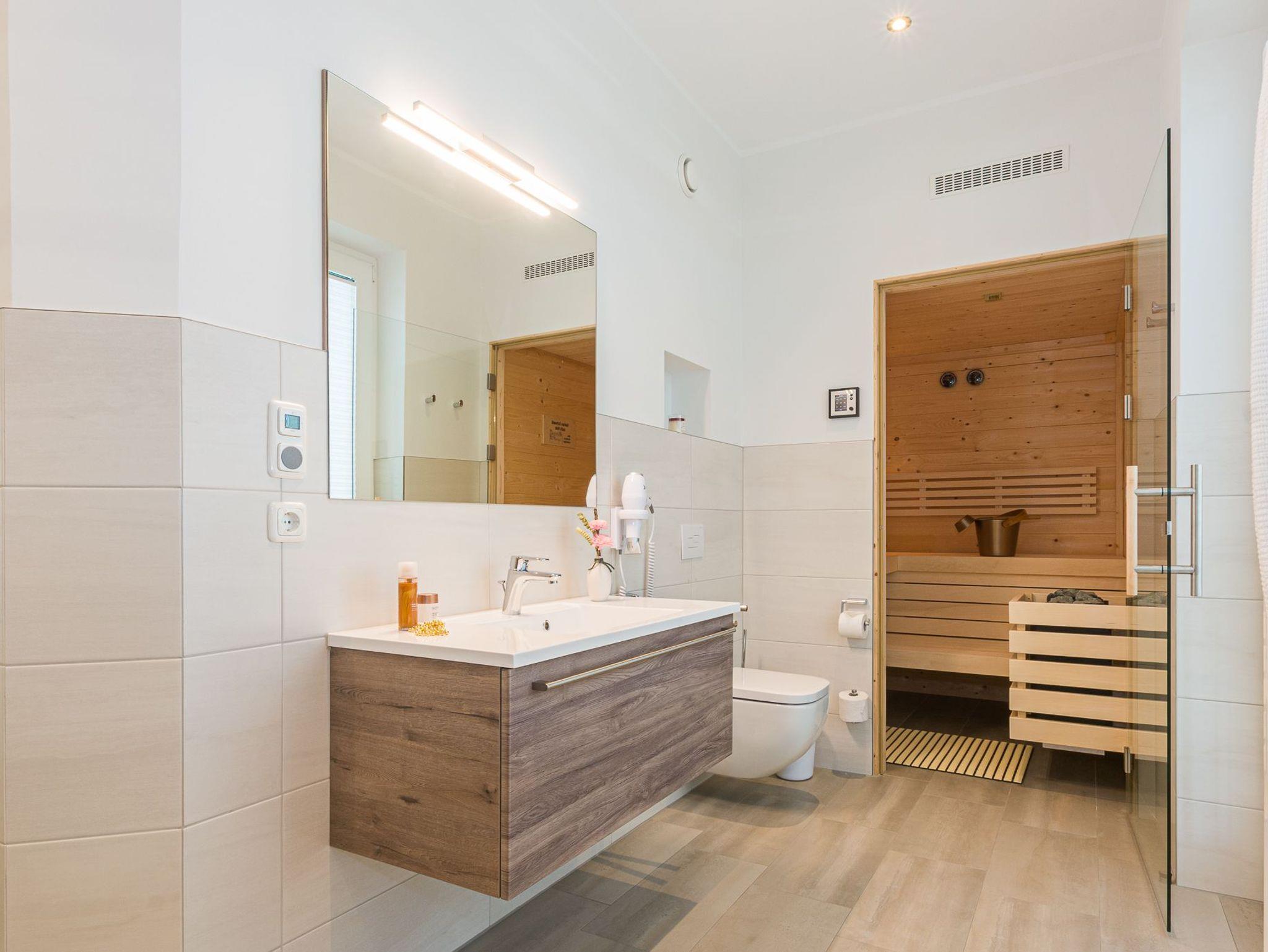 Auf 125 m² erwartet Sie eine großzügige Wohnfläche mit einem offenen Wohn- und Essbereich, der mit einem gemütlichen Gas-Kamin ausgestattet ist. Hier können Sie gemütliche Abende verbringen und eine behagliche Atmosphäre genießen. Die beiden Schlafzimmer sind liebevoll gestaltet und laden zum Entspannen ein. Die beiden Badezimmer sind modern und komfortabel ausgestattet, eines davon verfügt über eine wohltuende Sauna, die Ihnen Entspannung pur bietet.