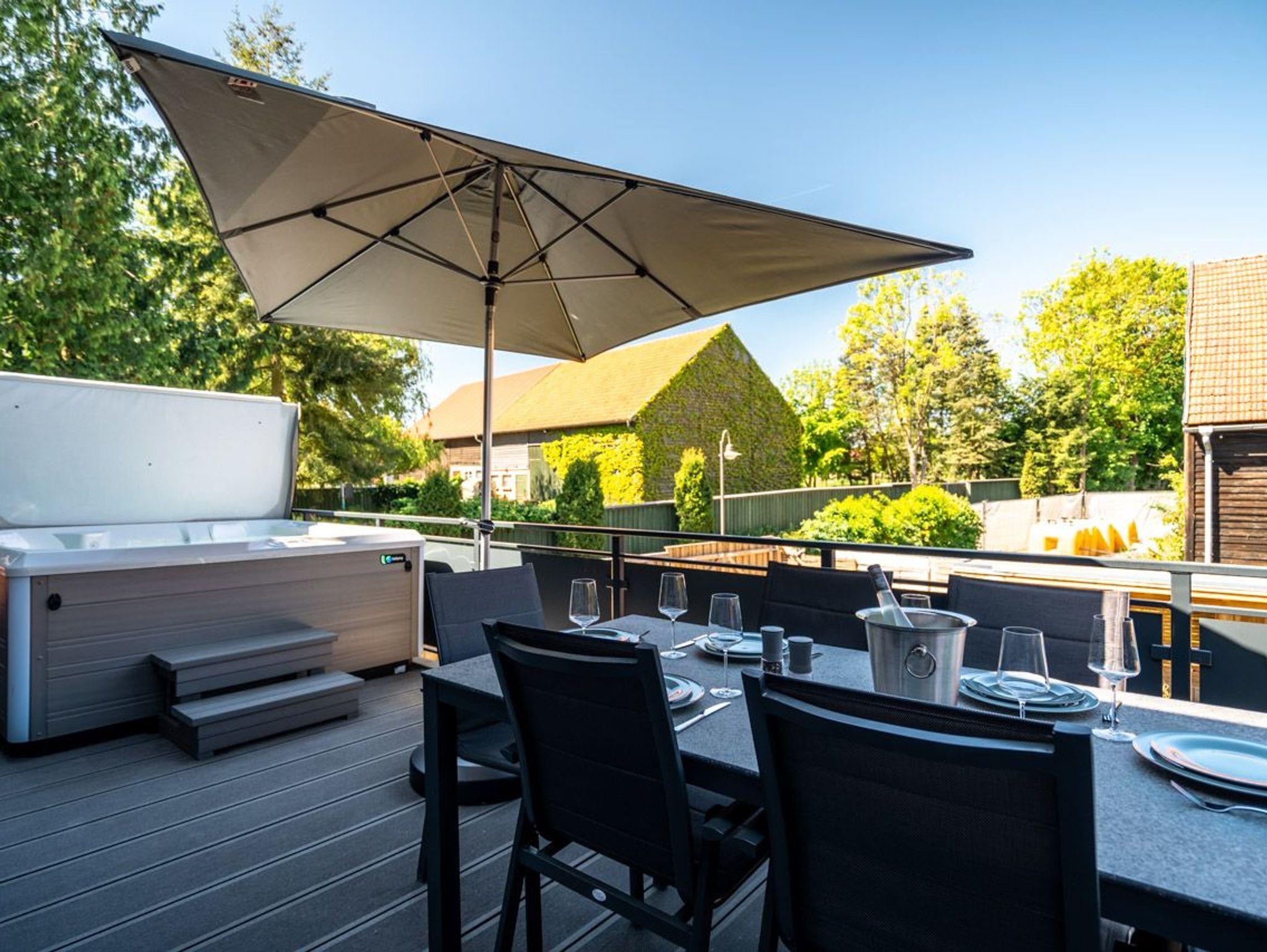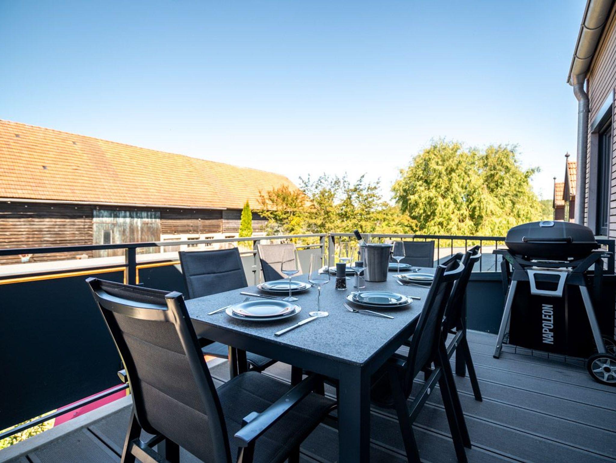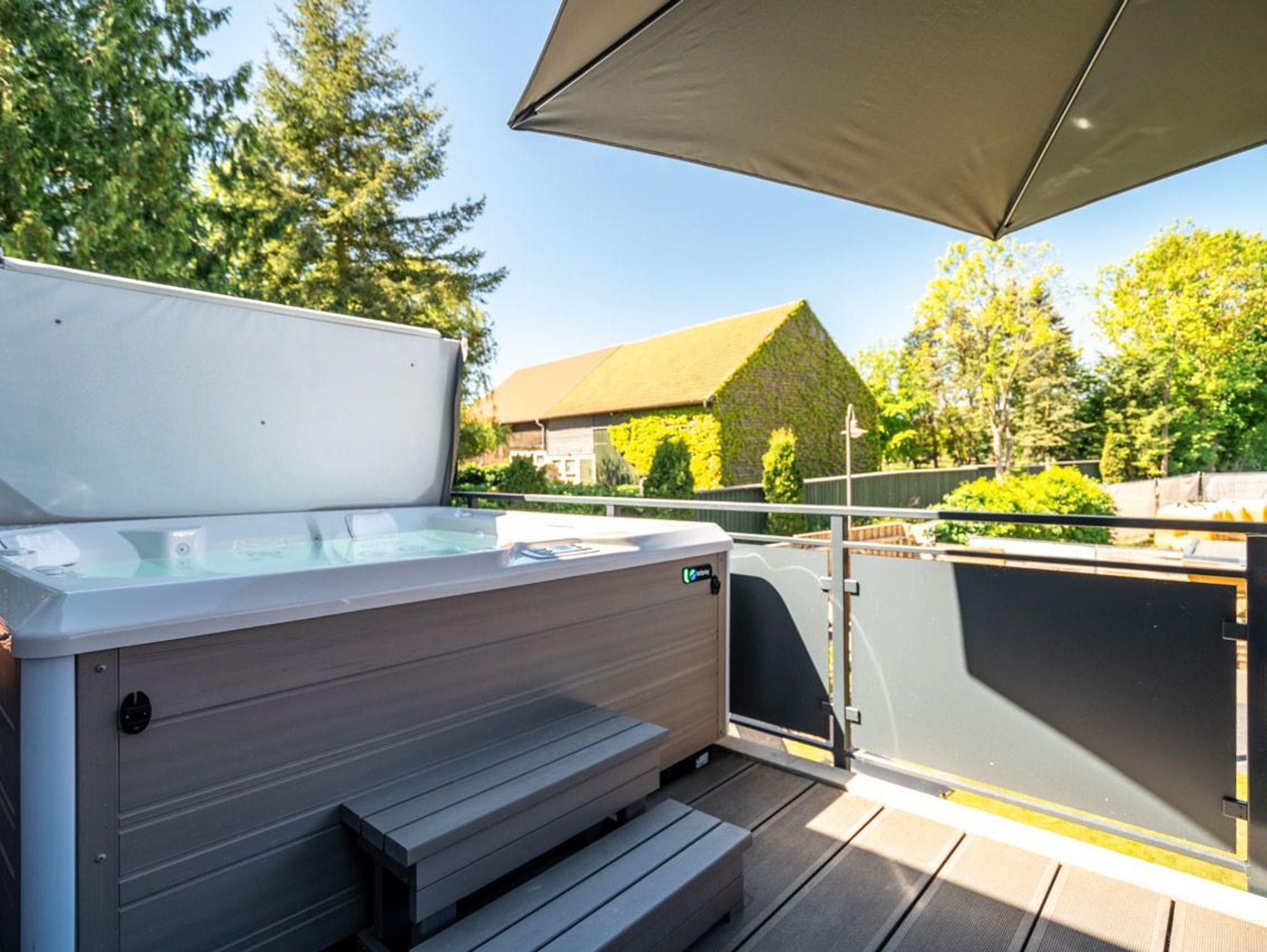 Der Balkon ist mit einem Außen-Whirlpool ausgestattet und lädt dazu ein, unter freiem Himmel zu entspannen oder gemeinsam gemütliche Grillabende zu verbringen.
