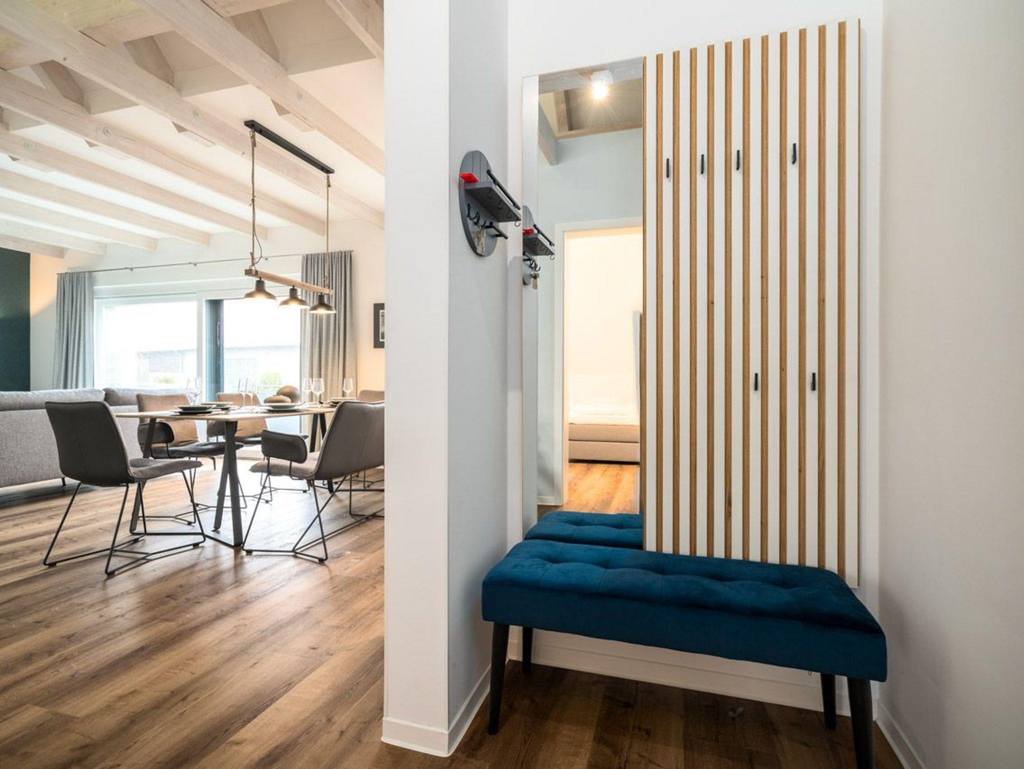 Diese Wohnung bietet luxuriösen Komfort und zahlreiche Annehmlichkeiten. Mit zwei Schlafzimmern mit Doppelbetten und einem weiteren Schlafzimmer mit zwei Einzelbetten ist genügend Platz für erholsamen Schlaf vorhanden. Die beiden Badezimmer mit Duschen und einer Wärmekabine sorgen für Entspannung und Wohlbefinden. Der offene Wohn- und Essbereich schafft einen einladenden Raum für gemeinsame Aktivitäten. Die offene Küche ist modern ausgestattet und bietet alles, was Sie für die Zubereitung köstlicher Speisen benötigen.