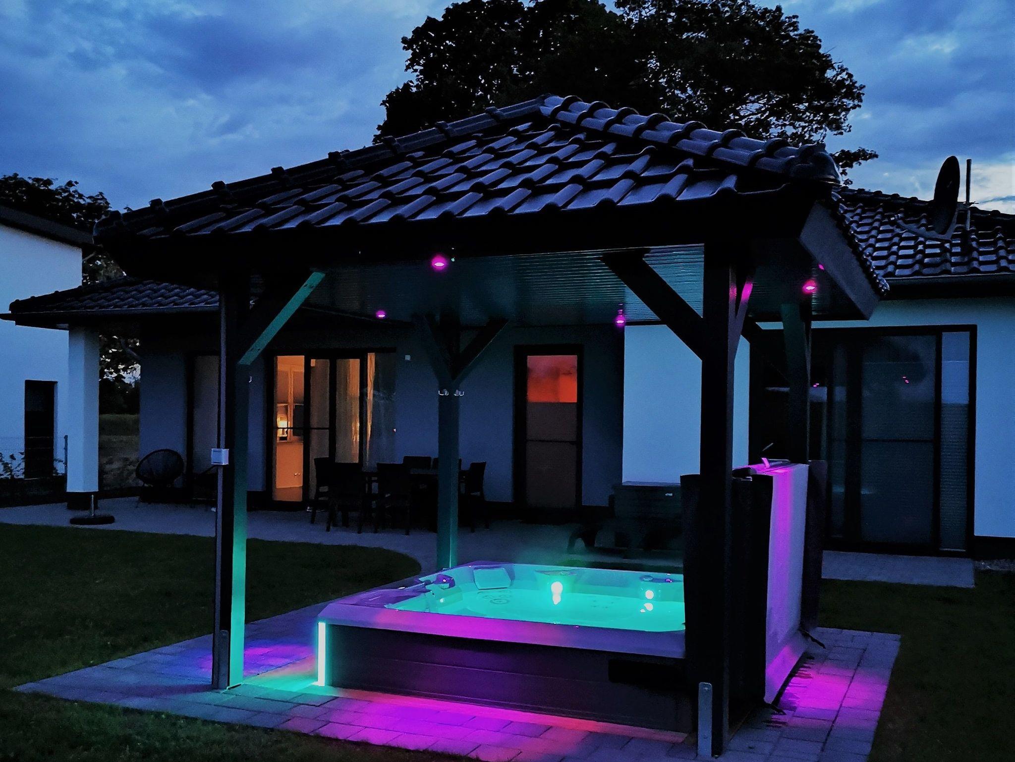 Ein absolutes Highlight ist der überdachte Whirlpool im Garten, der Ihnen ganzjährig wohltuende Entspannung unter freiem Himmel ermöglicht. Lassen Sie sich von den sprudelnden Massagedüsen verwöhnen und genießen Sie die Ruhe und Schönheit des Gartens.
