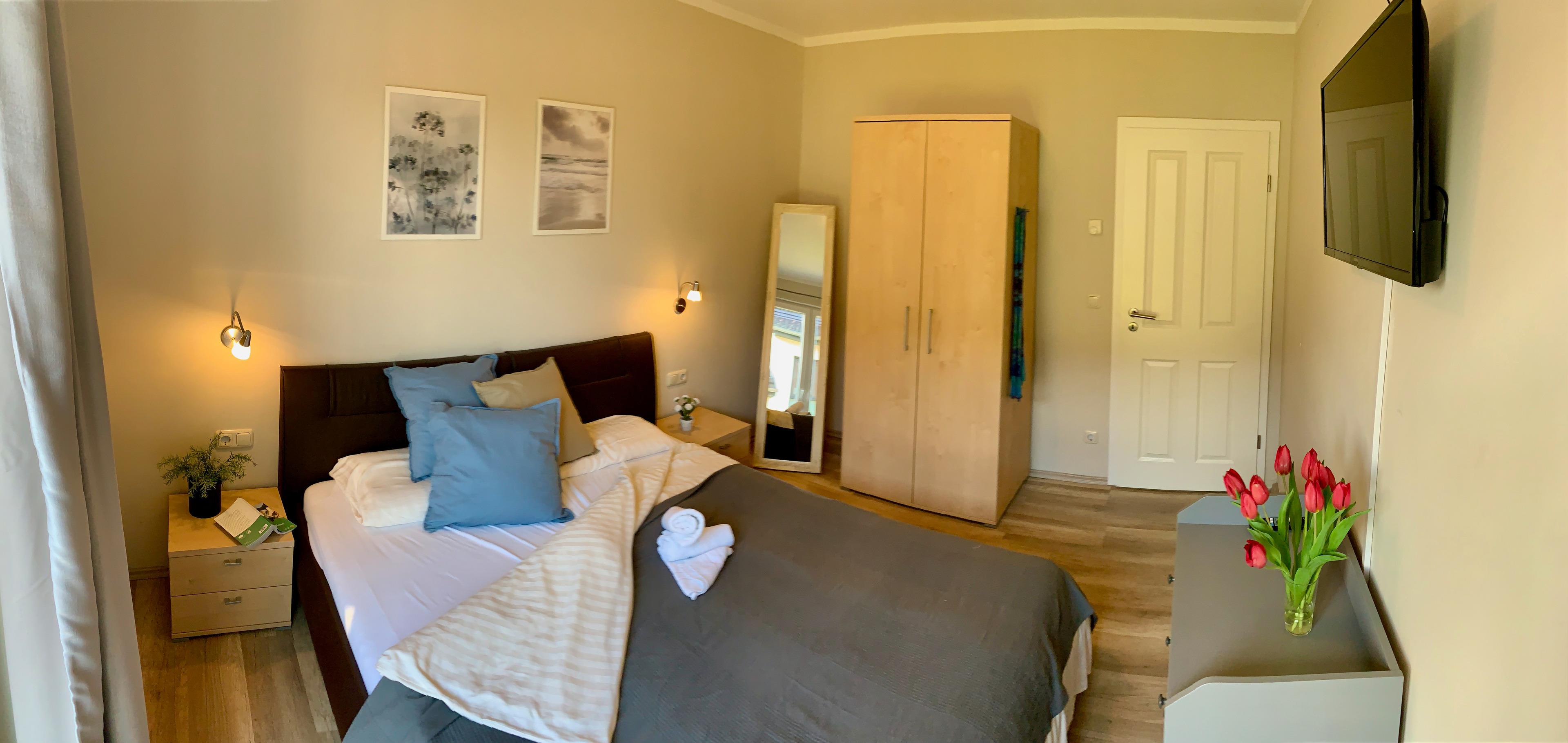 * Schlafzimmer 1&2: je 1 Doppelbett (1x 160x200 und 1x 180x200), Smart TV mit Netflix Zugang, Kleiderschrank, direkter Terrassenzugang von jedem Schlafzimmer
