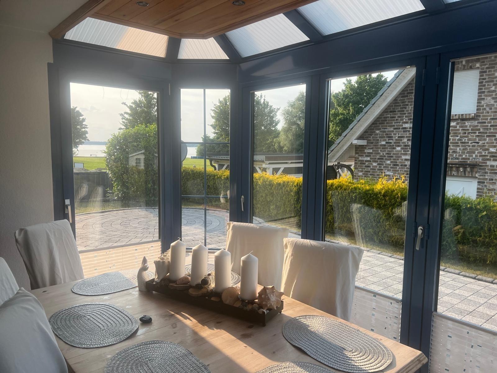 Willkommen in unserem lichtdurchfluteten und stilvoll eingerichteten Ferienhaus in Untergöhren, nur wenige Schritte vom sanften Badestrand am Fleesensee entfernt. Das Haus bietet auf zwei Ebenen drei gemütliche Schlafzimmer und zwei gut ausgestattete Bäder. Ein großzügiger Wohn- und Essbereich mit offenem Kamin und angrenzendem Wintergarten lädt zu entspannten Stunden mit Familie und Freunden ein. Große Fenster und die Terrasse bieten einen traumhaften Blick auf den See, perfekt für einen entspannten Start in den Tag mit Blick auf’s Wasser.