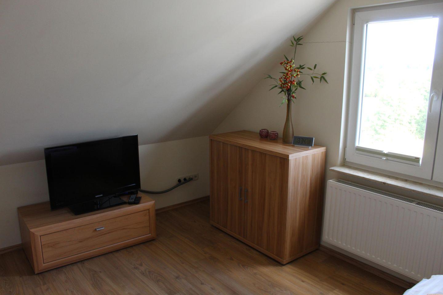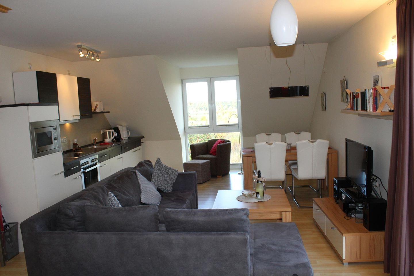 Die Wohnung befindet sich im 1. Stock eines gepflegten Mehrfamilienhauses und besticht durch Ihren großzügigen, offen gestalteten Wohnbereich mit einer voll ausgestatteten Küche und gemütlichen Essplatz. Ein moderner Gaskamin sorgt hier auch an kühleren Abenden für eine behagliche Atmosphäre. Ein besonderes Highlight ist der große Balkon mit herrlichem Blick ins Grüne - perfekt für ein Frühstück in der Morgensonne oder einen entspannten Abend mit einem Glas Wein. Das Badezimmer bietet mit einer eigenen Sauna zusätzlichen Komfort und Erholung. Im Dachgeschoss befindet sich das gemütliche Schlafzimmer mit einem Doppelbett - ideal für erholsame Nächte.