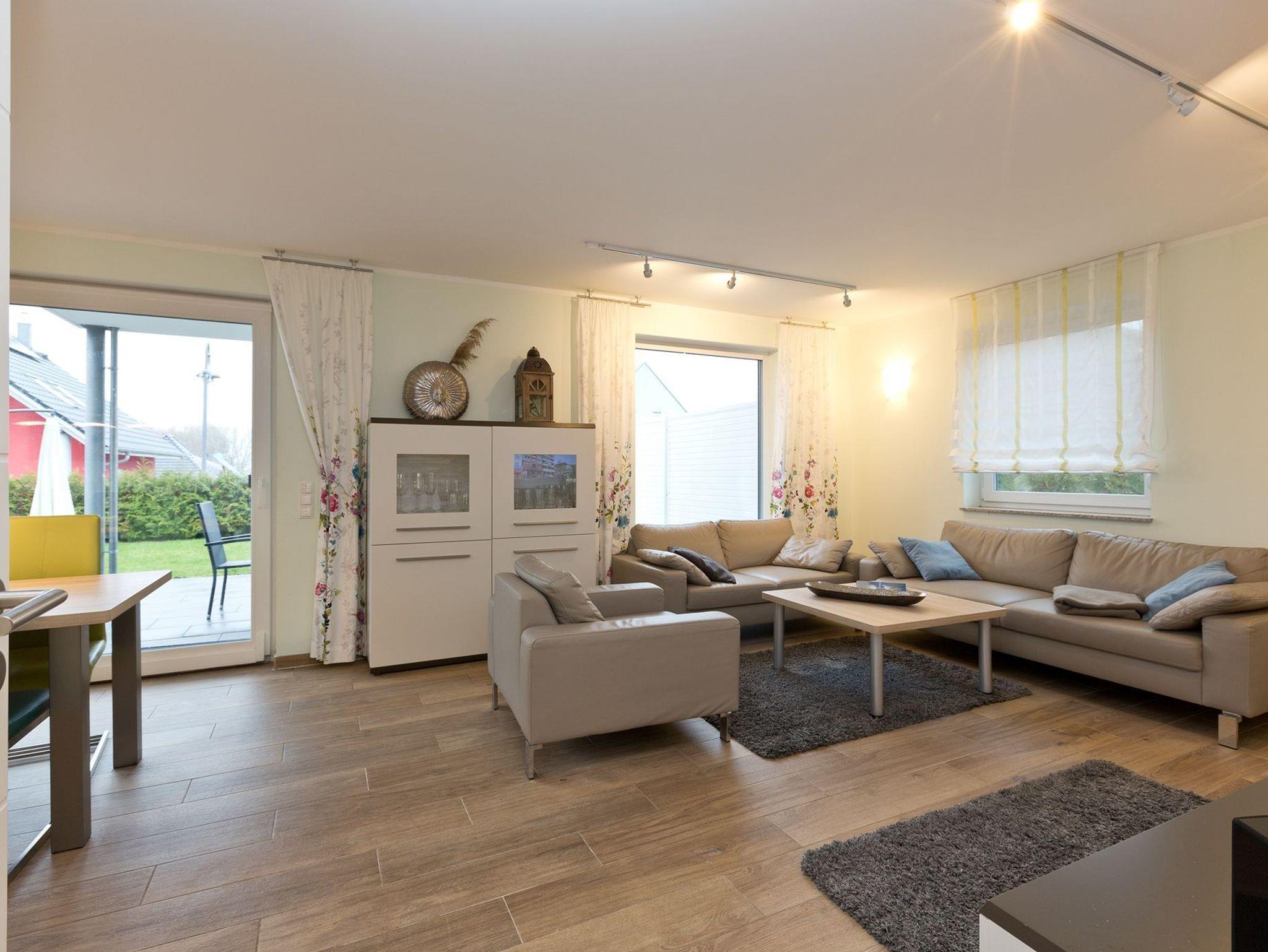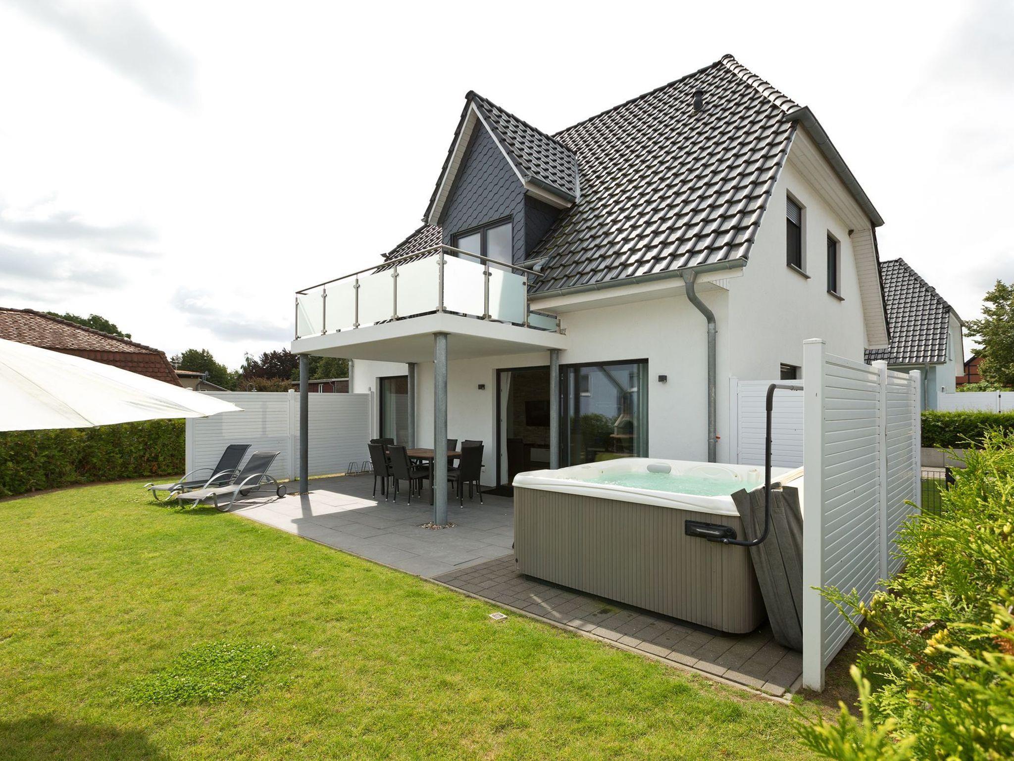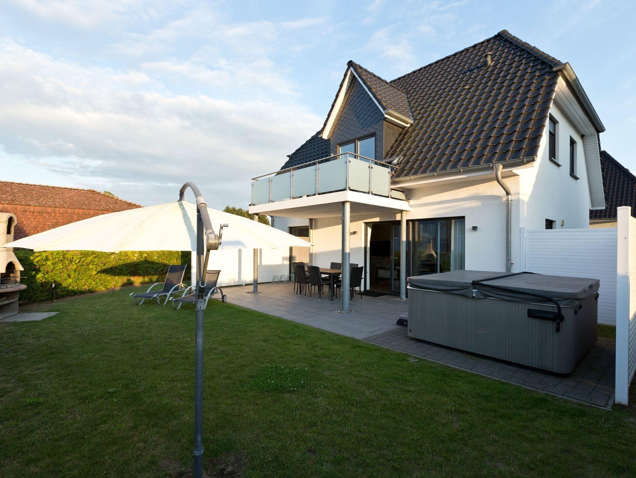 Unser Ferienhaus lädt zum Wohlfühlen für die ganze Familie ein. Vom kombinierten Wohn-Essbereich mit hochmoderner Einbauküche betreten Sie die große möblierte Sonnenterrasse mit Whirlpool. In Ihrem Garten warten eine Sonnenliegen und ein Sonnenschirm auf Sie.