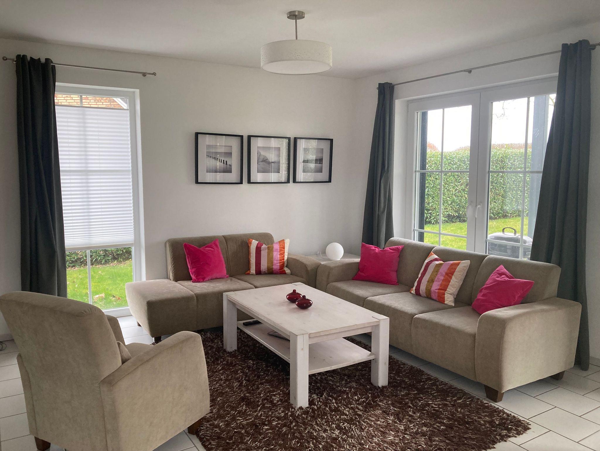 Modernes Ferienhaus für 6 Personen mit 3 Schlafzimmern, 2 Duschbädern mit WC, Wohn/-Esszimmer mit Küche und HWR. Ein großzügiger Garten mit Terrasse, Gartenmöbeln und Grill steht Ihnen zur freien Verfügung.