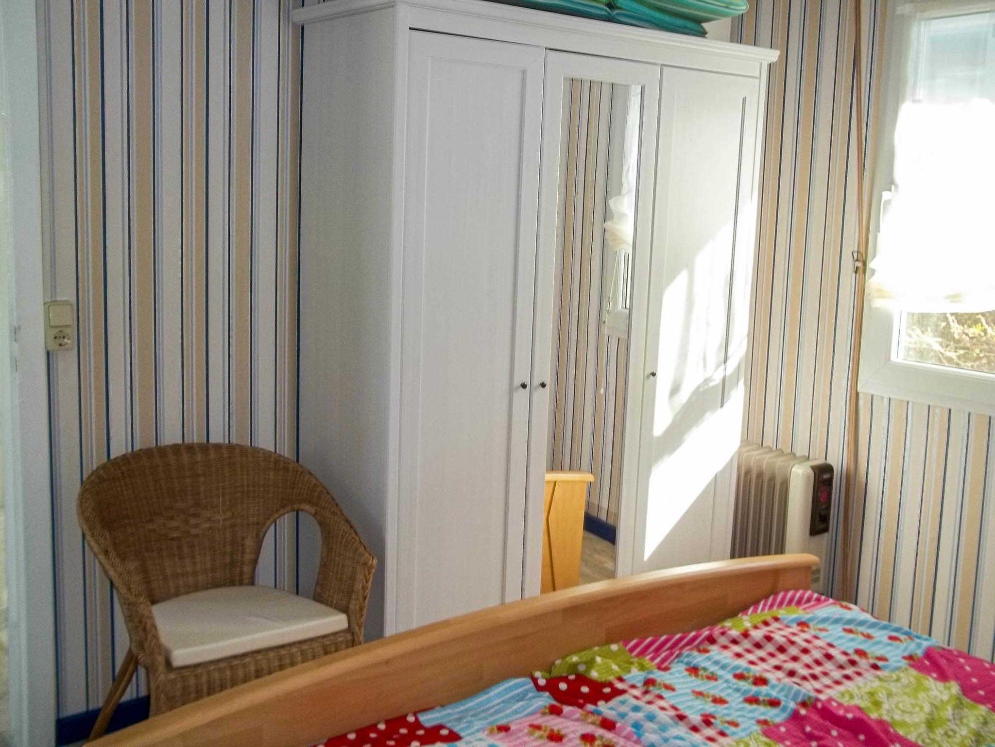 Der Bungalow verfügt über ein Schlafzimmer mit Doppelbett (180x200, getrennte Matratzen), ein kleines Schlafzimmer mit Etagenbett (90x200), ein Wohnzimmer mit eine Couch, eine Küche und ein Bad mit Dusche und WC.