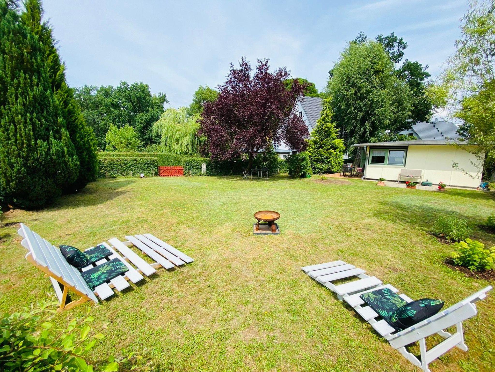 Der Bungalow bietet zudem einen großen Garten mit einer kleinen Terrasse, auf der Sie die frische Luft und die Umgebung zusammen mit Ihrer Familie genießen können. Die Terrassenmöbel laden dazu ein, entspannte Stunden im Freien zu verbringen.