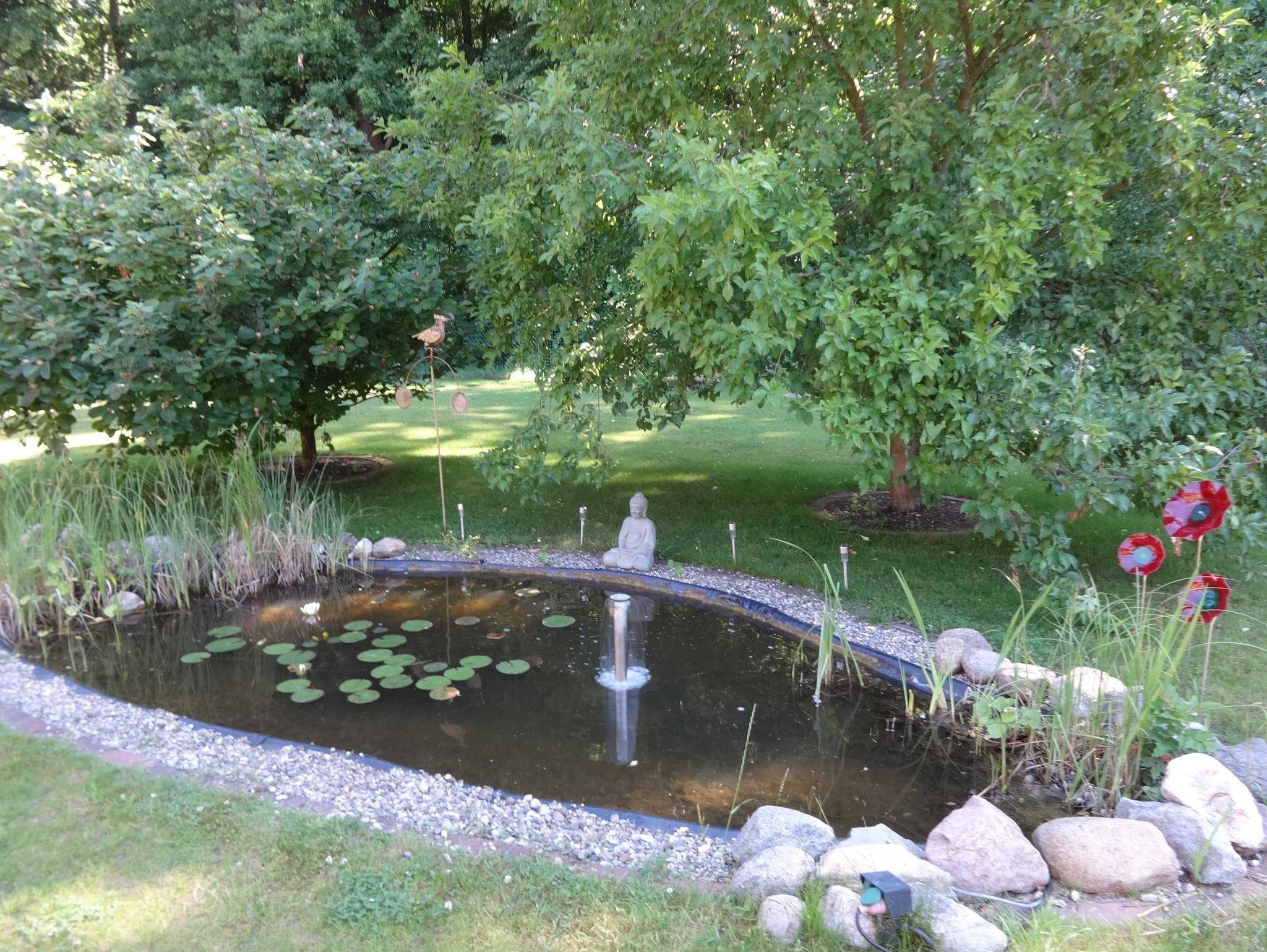Das Haus verfügt im Aussenbereich über zwei Terrassen (je 1x vor und hinter dem Haus) und einen kleinen Gartenteich mit Goldfischen. Auf der hinteren Gartenterrasse finden Sie einen ausziehbaren Streckmetalltisch und 10 dazugehörige Gartenstühle.Auf der vorderen Terrasse stehen Ihnen 2 Bänke und 1 Tisch aus rustikalen Hölzern zur Verfügung.