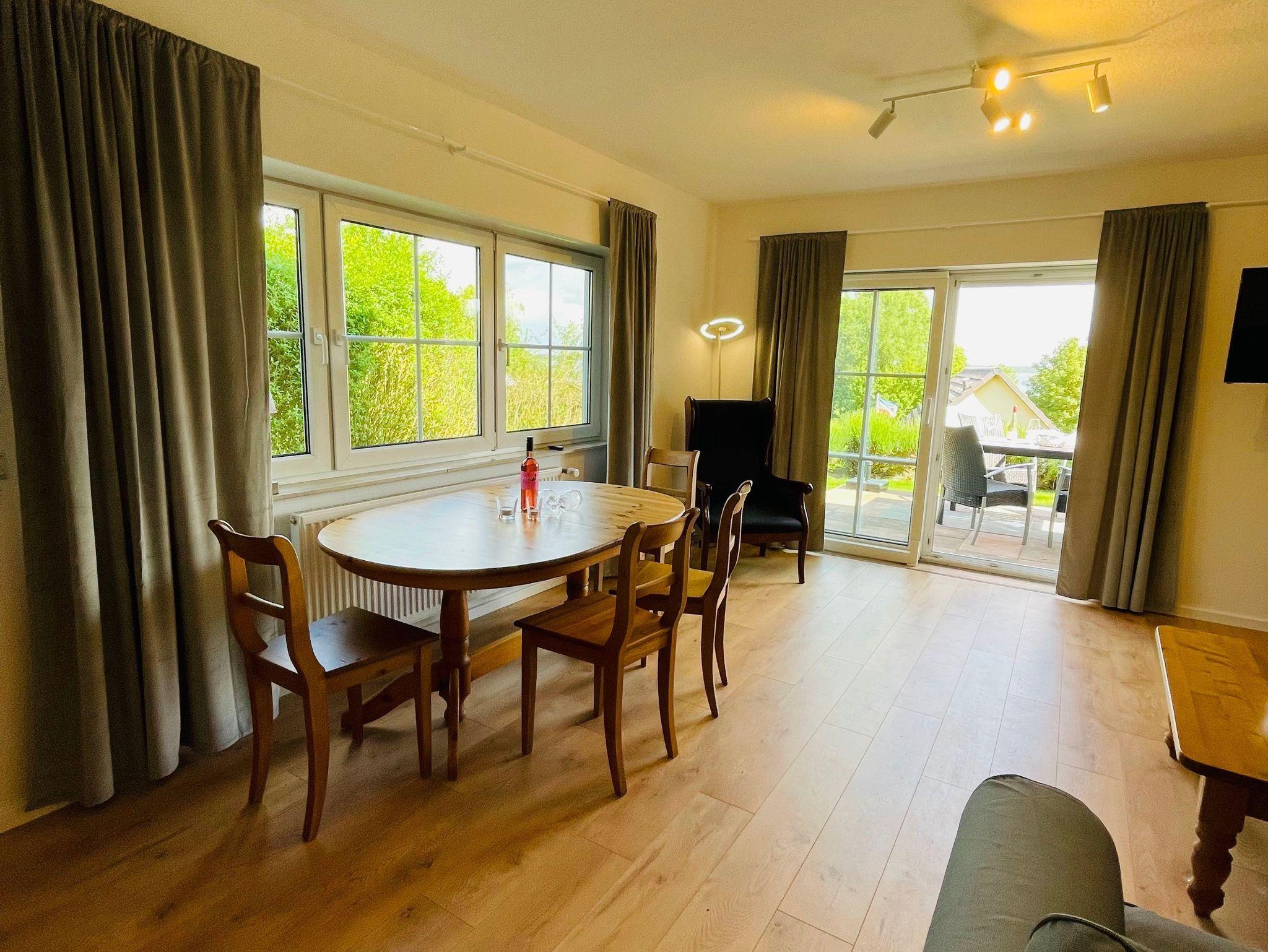 Die 2-Zimmer Ferienwohnung Fleesensee mit 46 m² und traumhaftem Seeblick liegt im Erdgeschoss der Herberge Seensucht.