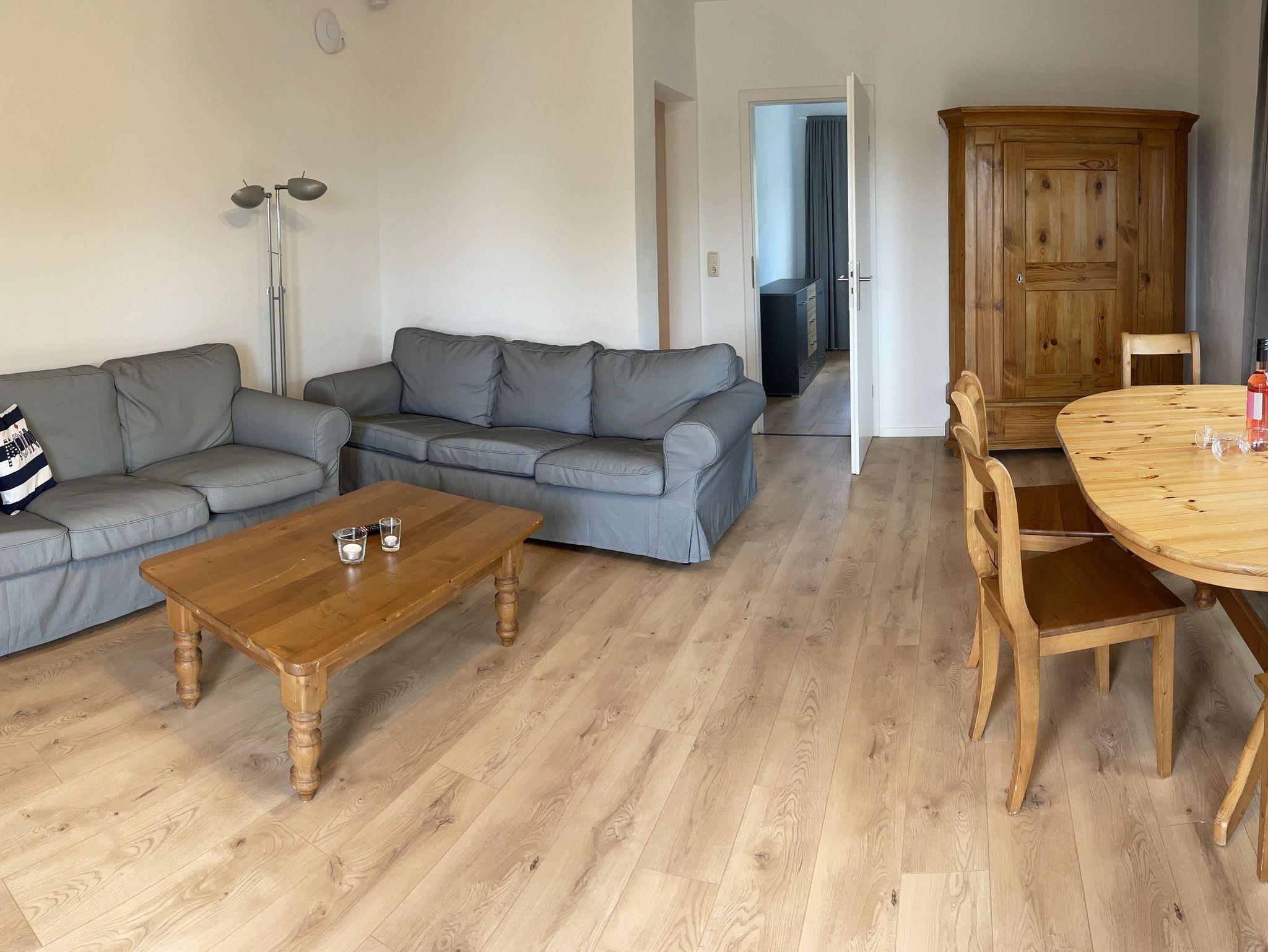 Ein lichtdurchfluteter Wohn- und Essbereich, ein Schlafbereich mit einem Doppelbett & Kleiderschrank und einem Schlafsofa, eine vollausgestattete Küche und ein Duschbad stehen Ihnen zur Verfügung.